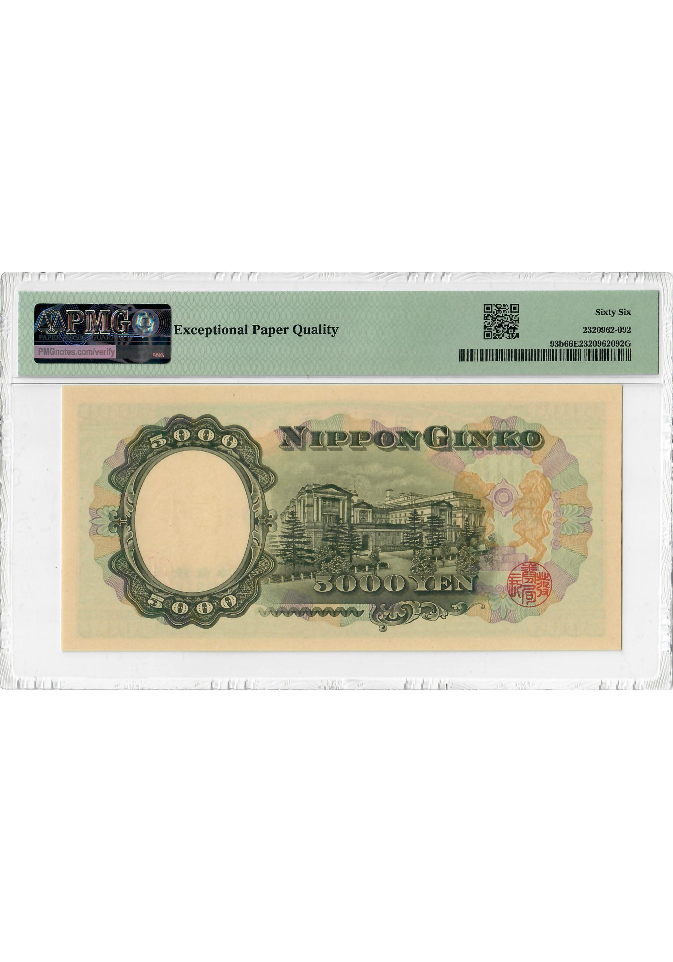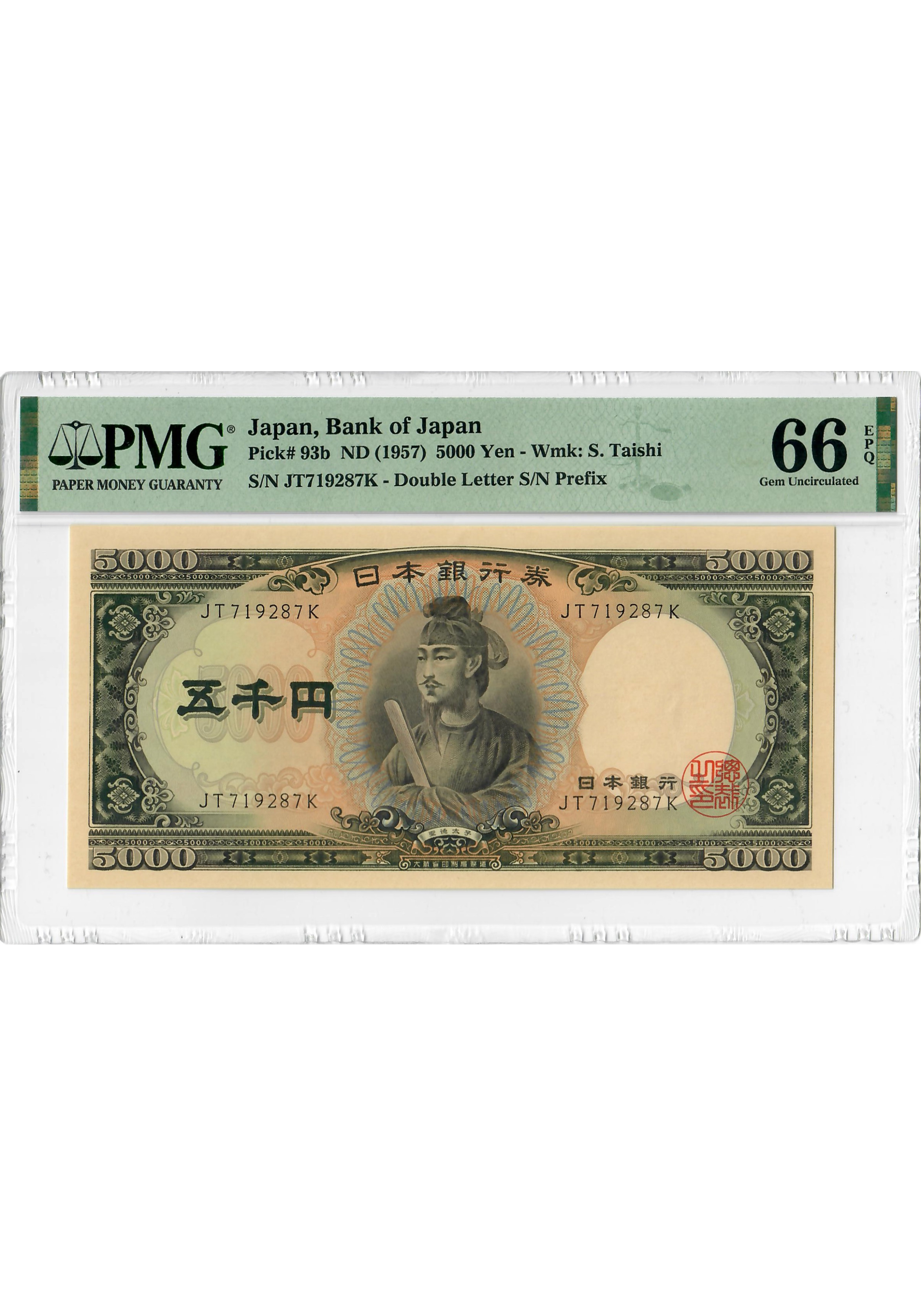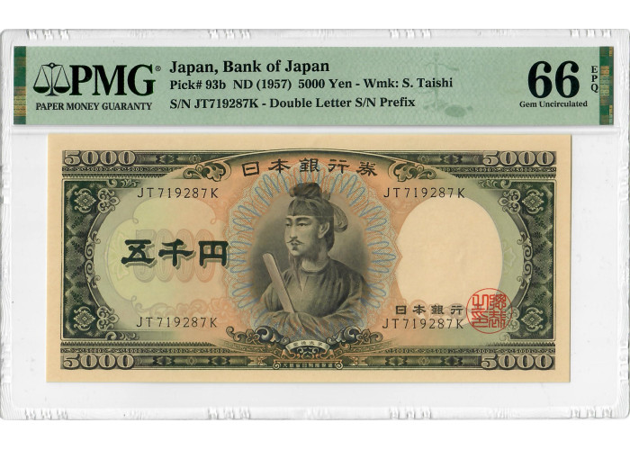 Japan 5000 Yen ND (1957), PMG 66 EPQ, "Bank of Japan" Pick# 93b