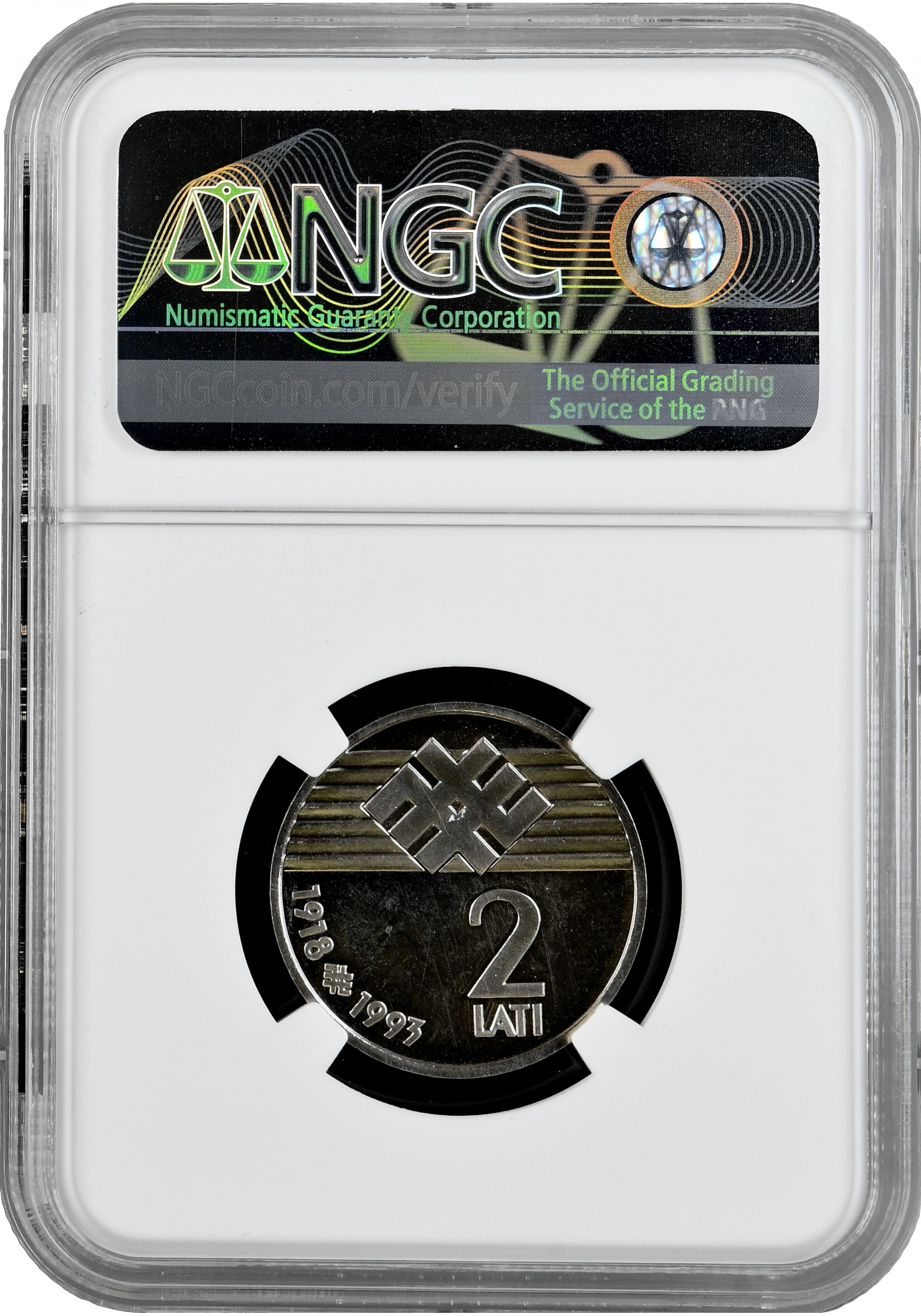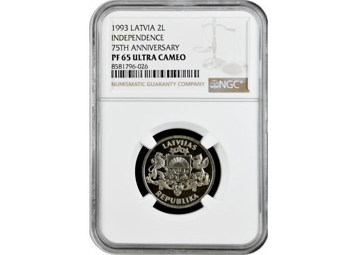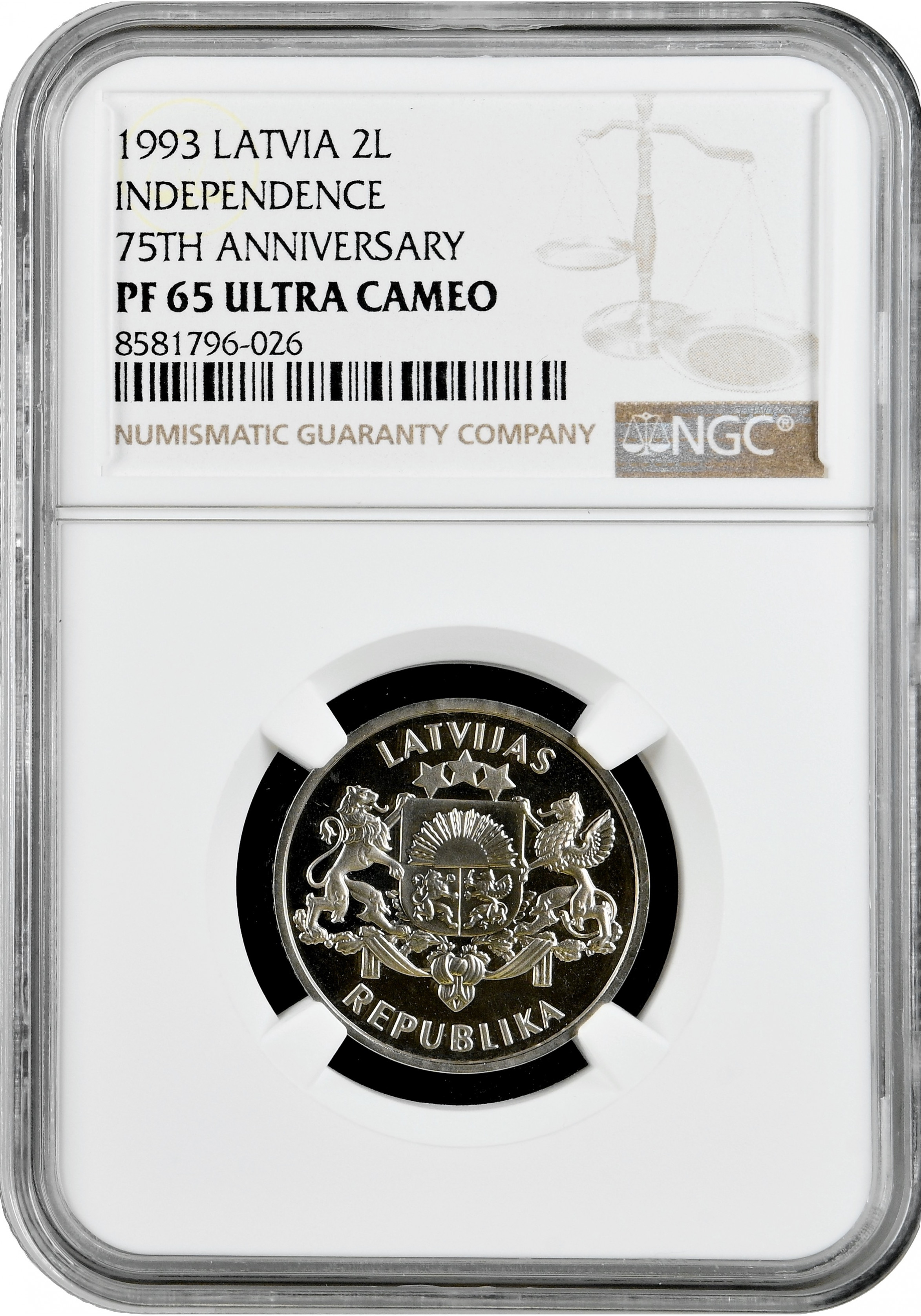 | Randbeschriftung | 'LATVIJAS VALSTS 75 GADI' (75th Anniversary of the state of Latvia) |