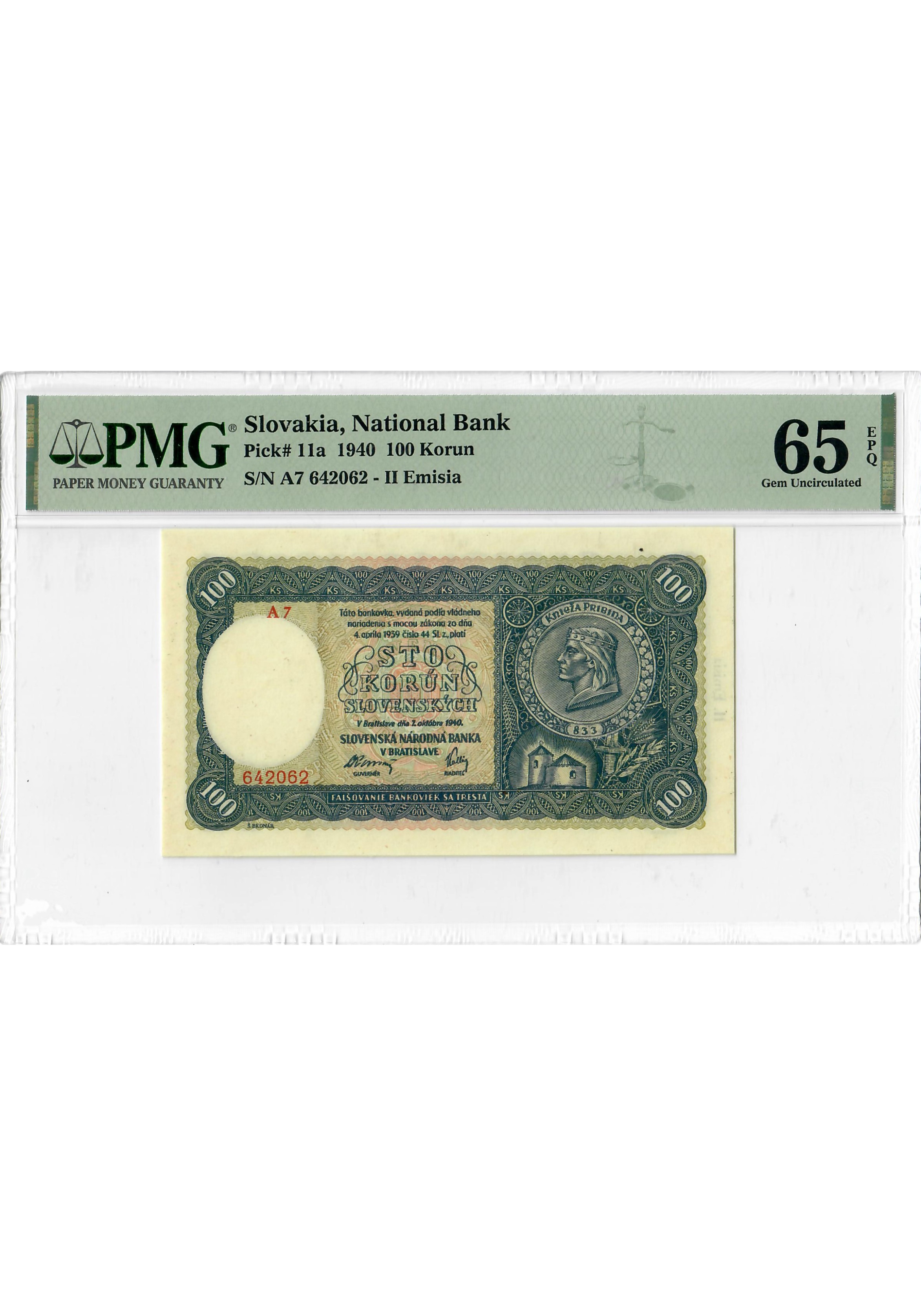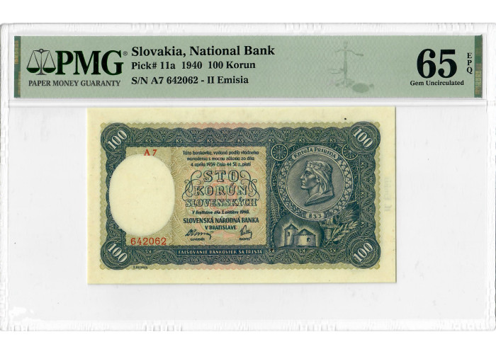 Slowakei 100 Kronen 1940, PMG 65 EPQ, „National Bank“ Pick# 11a