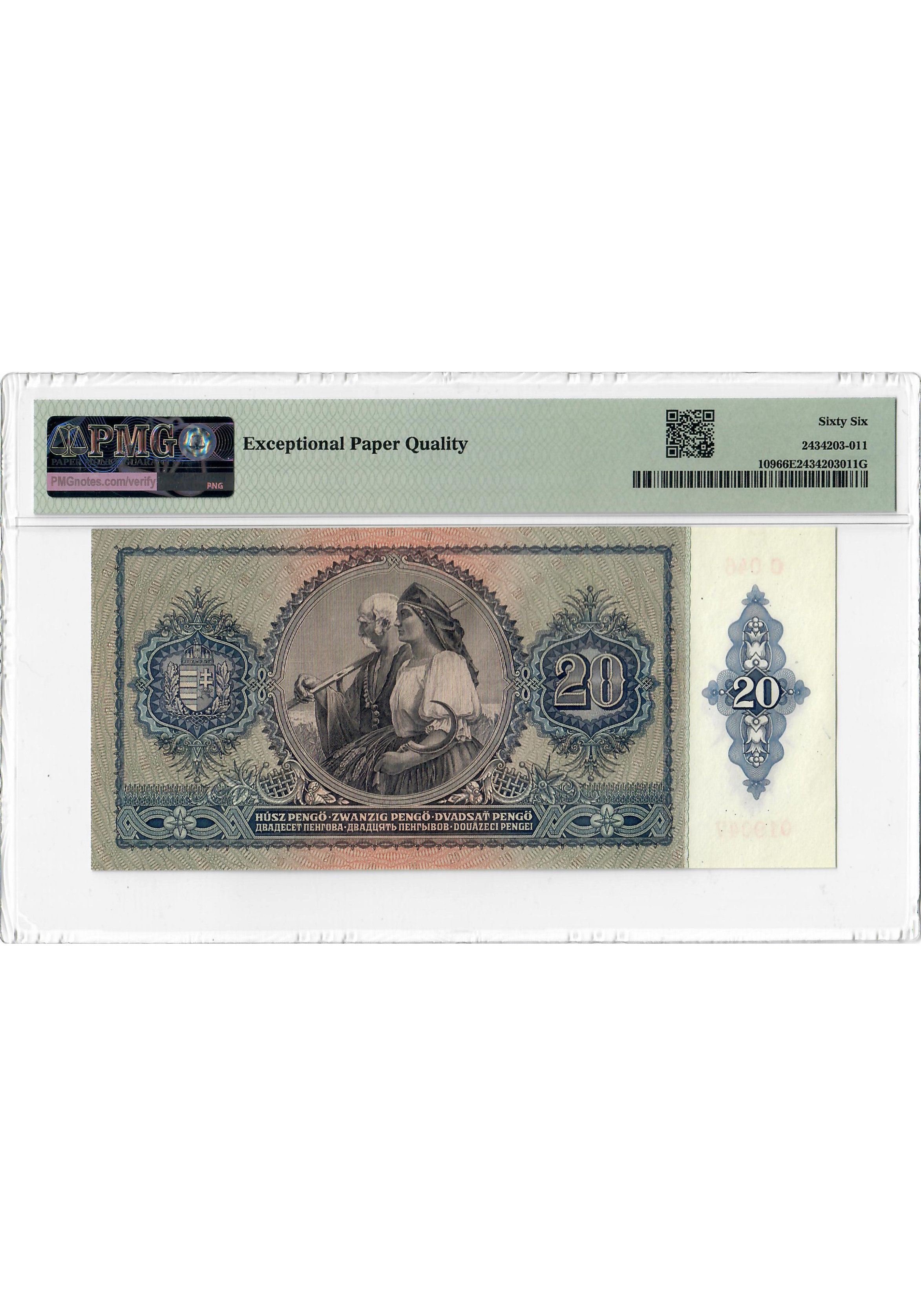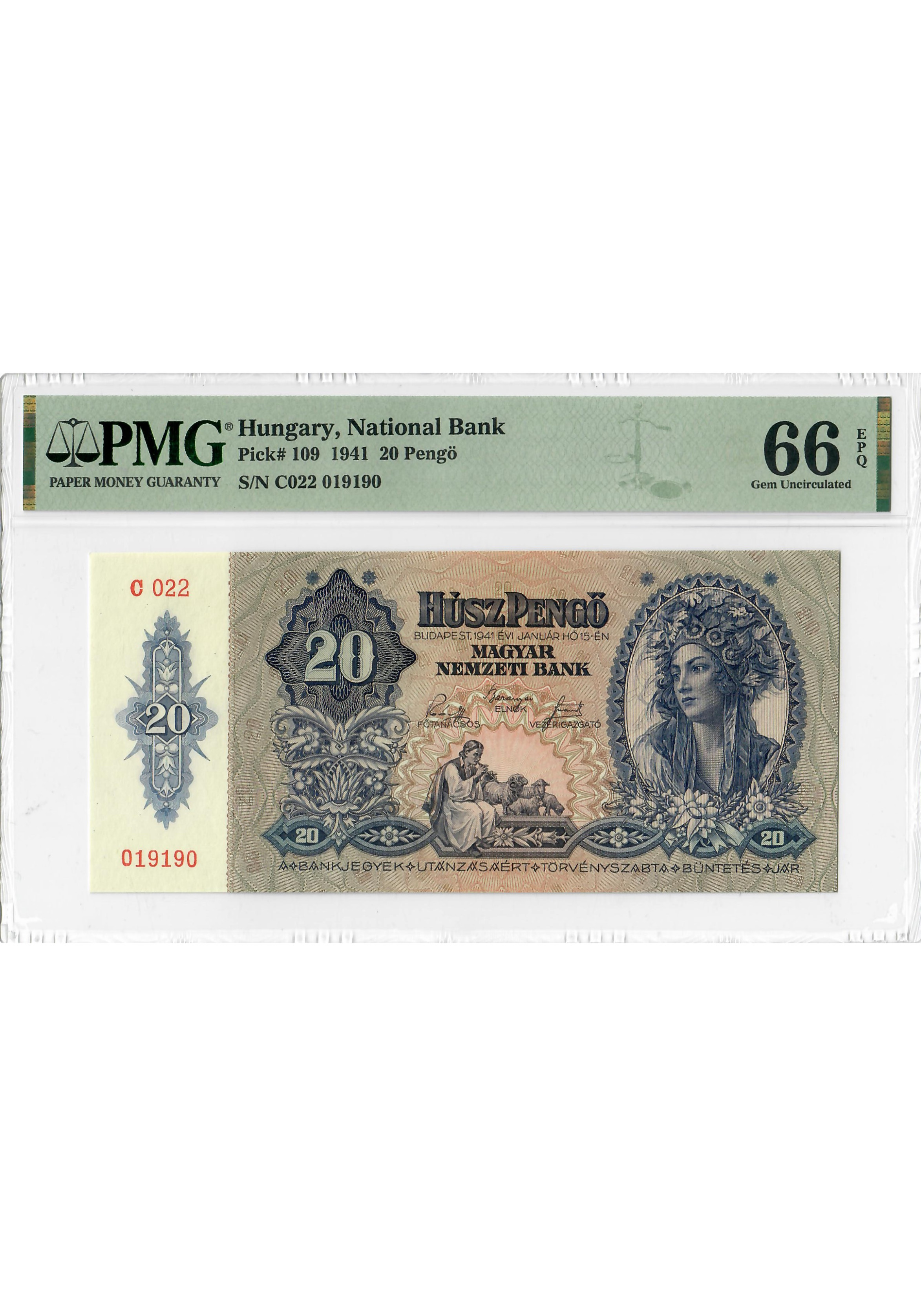 Ungarn 20 Pengo 1941, PMG 66 EPQ, "National Bank" Pick# 109