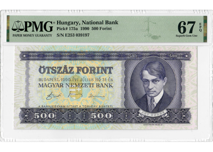 Ungarn 500 Forint 1990, PMG 67 EPQ, „National Bank“ Pick Nr. 175a Top Pop