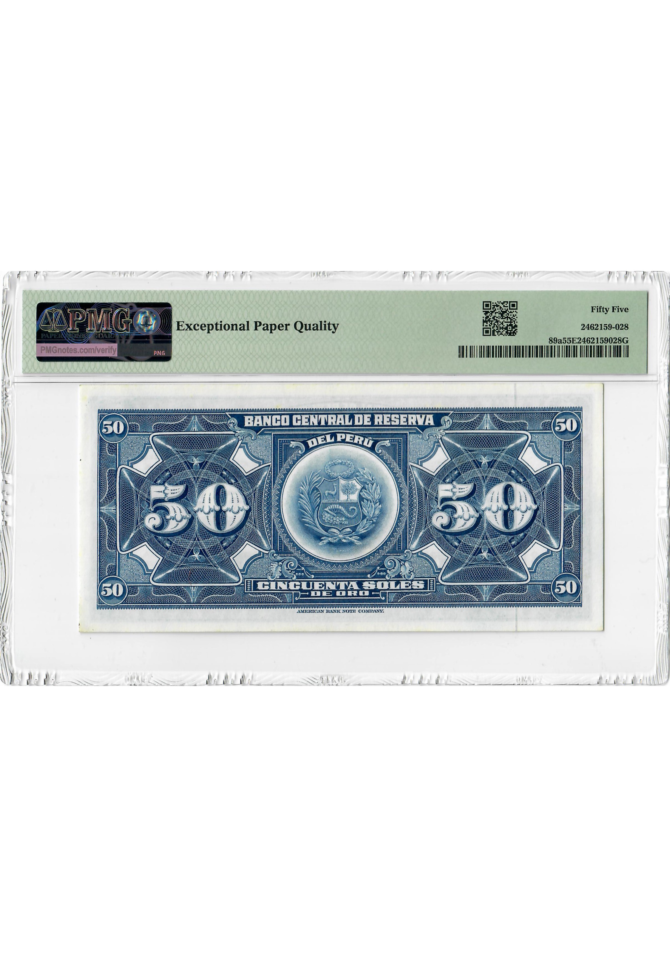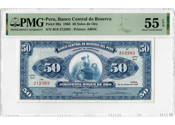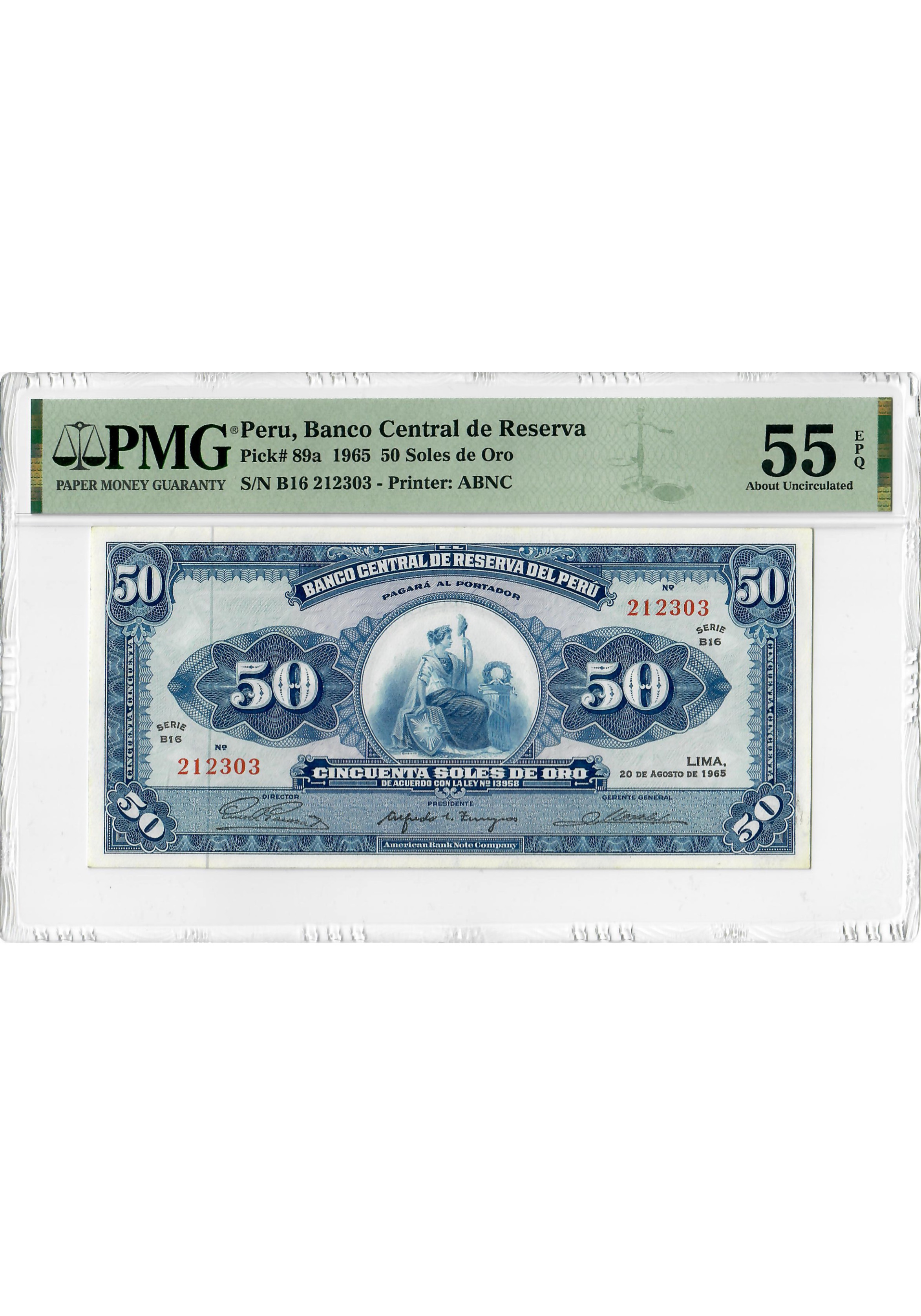 Peru 50 Soles de Oro 1965, PMG 55 EPQ, „Banco Central de Reserva“ Pick# 89a