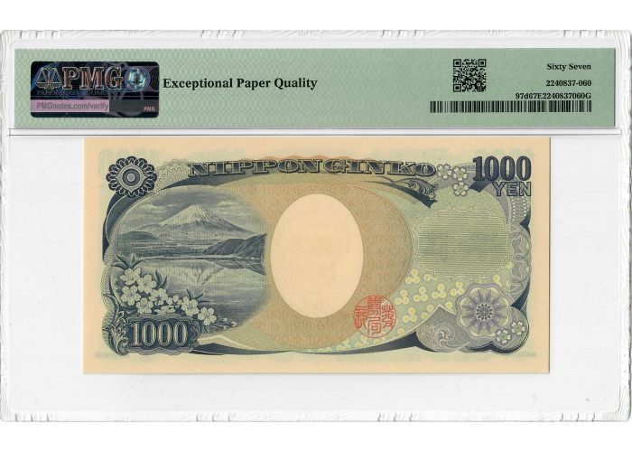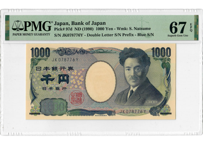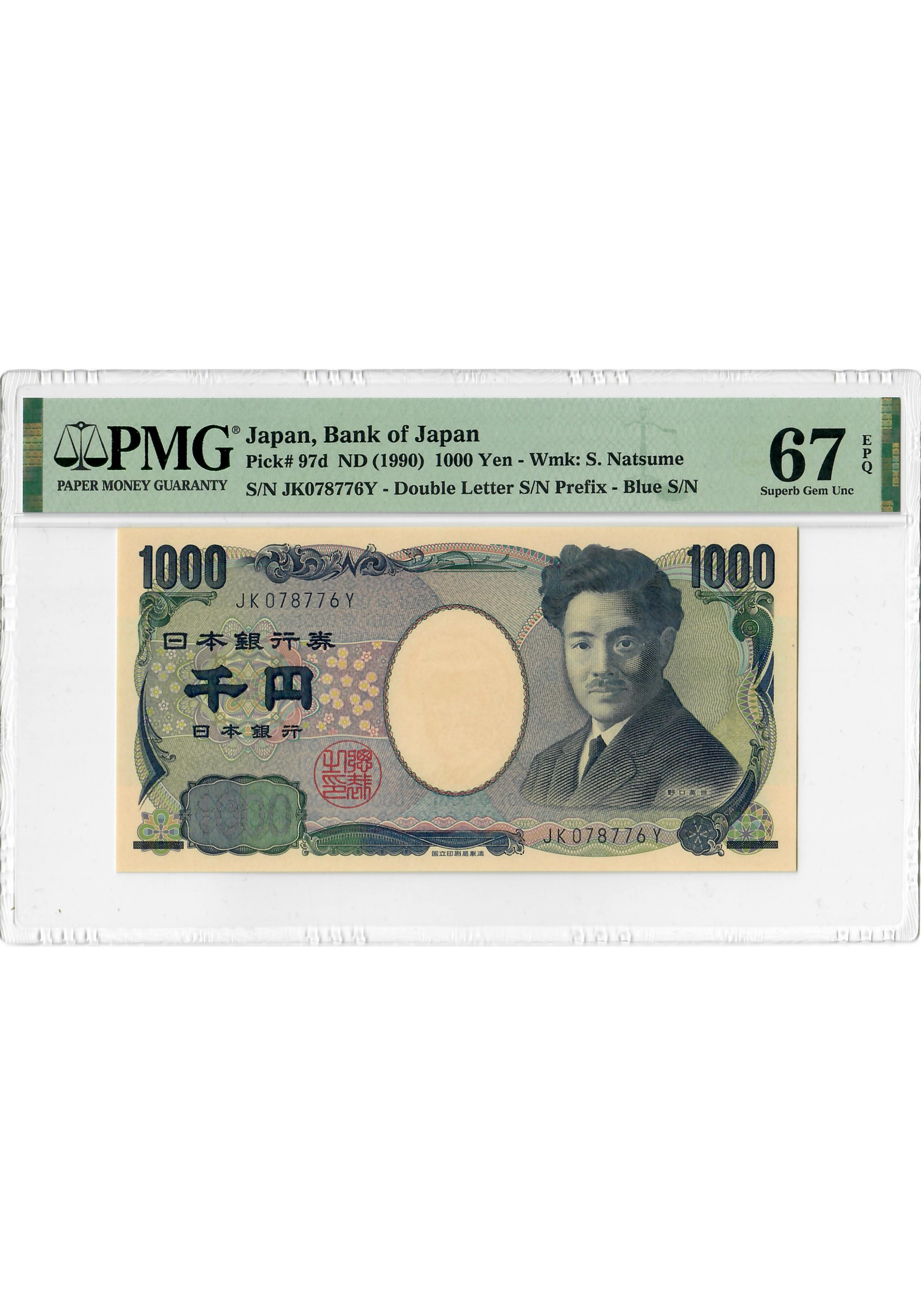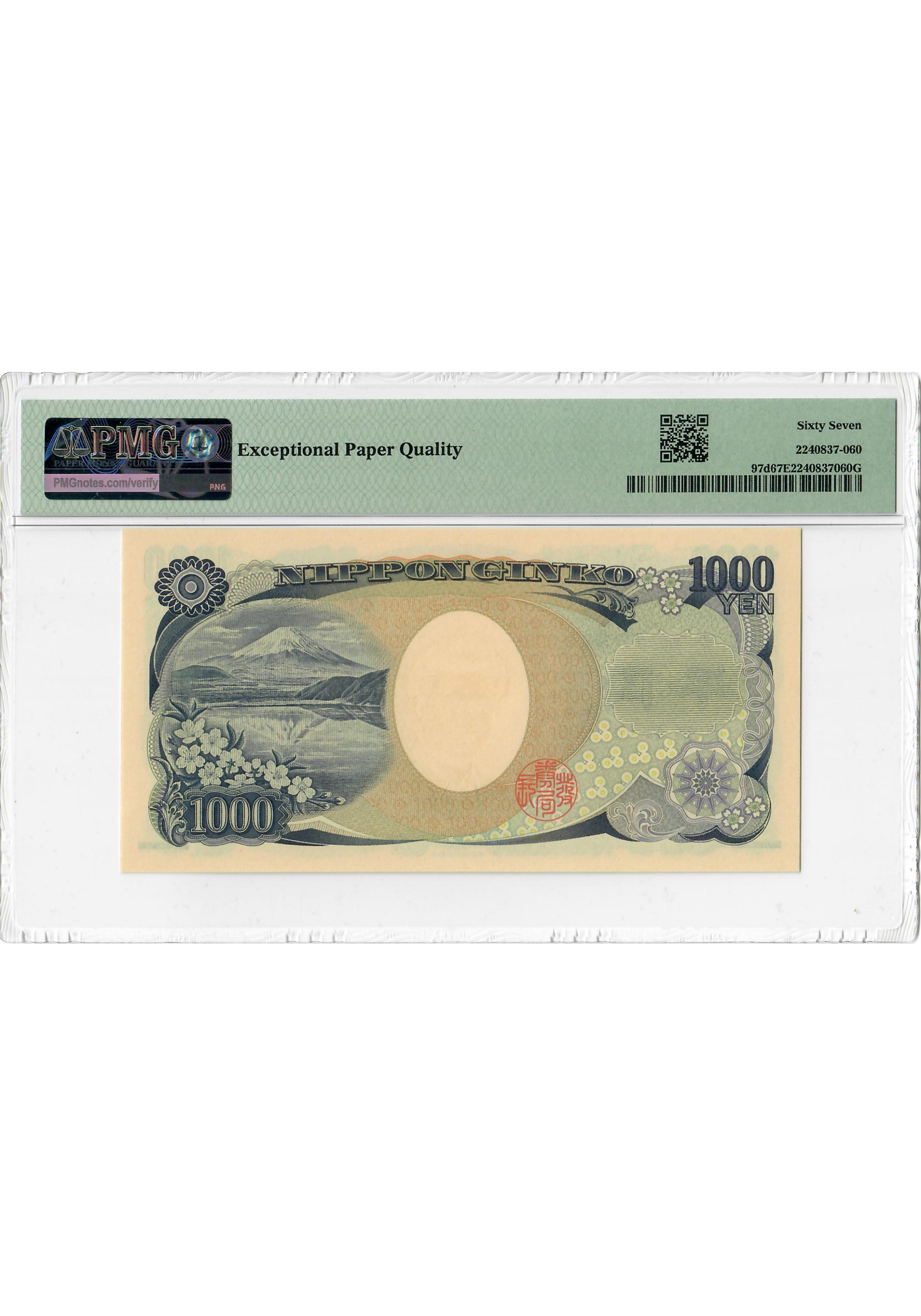 Japan 1000 Yen 1990, PMG 67 EPQ, "Bank of Japan" Pick# 97d