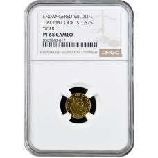 Cook Islands 25 dollars 1990 PM, NGC PF68 CA, "Endangered Wildlife - Tiger" gold