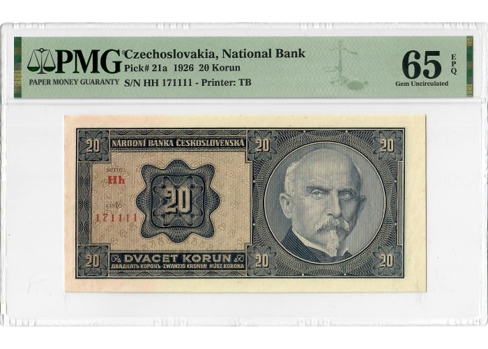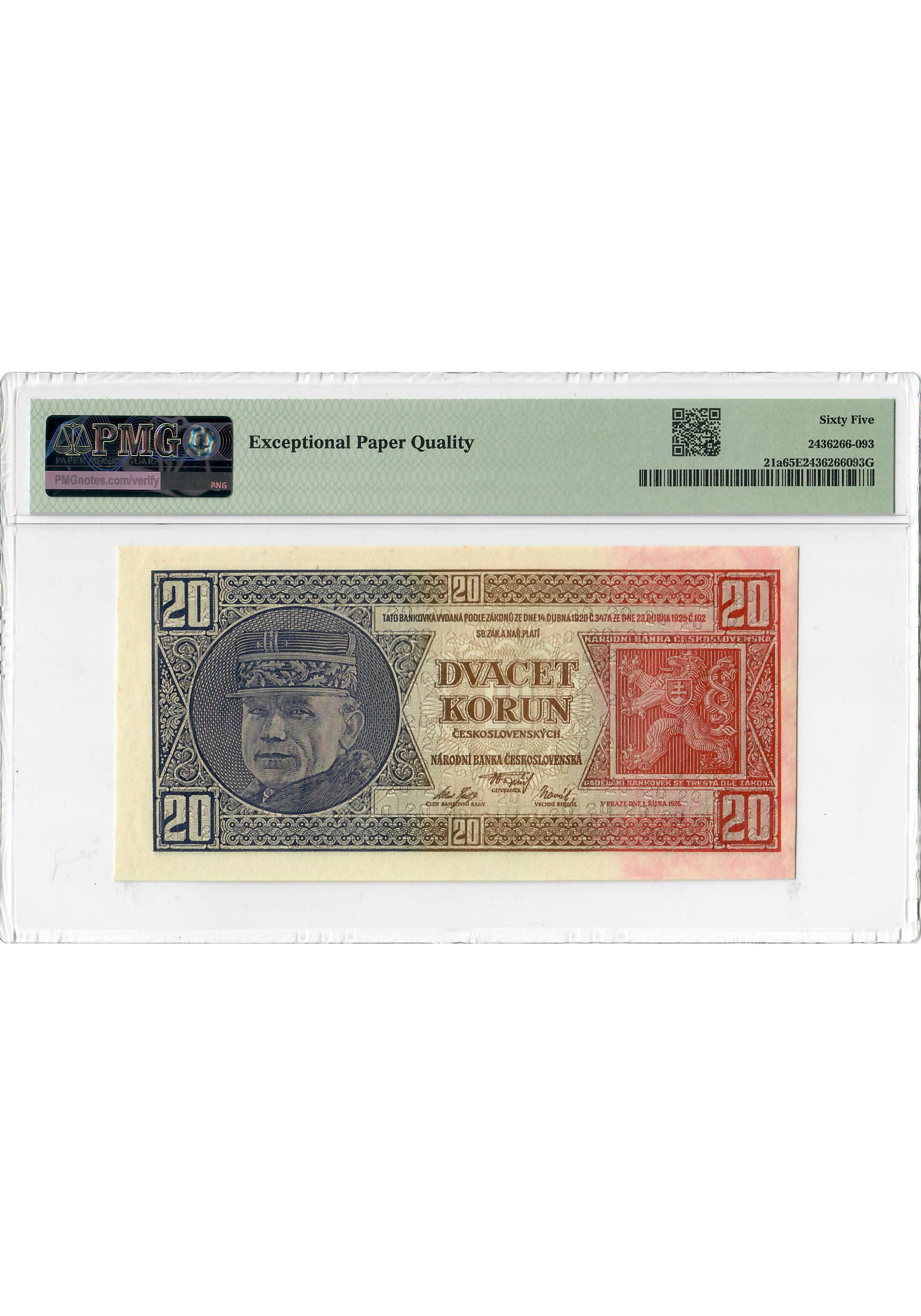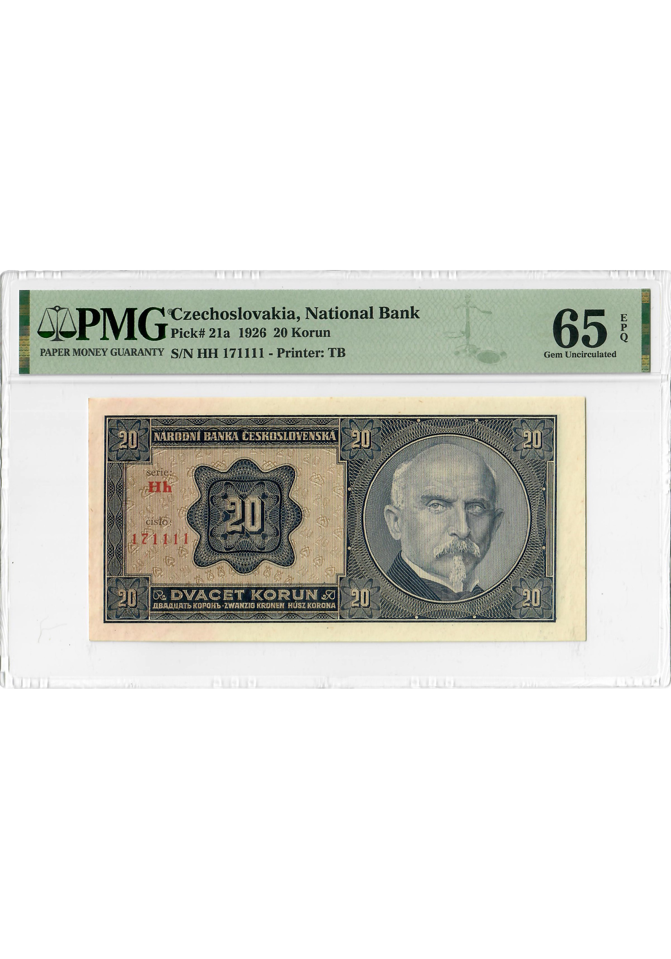 Czechoslovakia 20 Korun 1926, PMG 65 EPQ, "National Bank" Pick# 21a