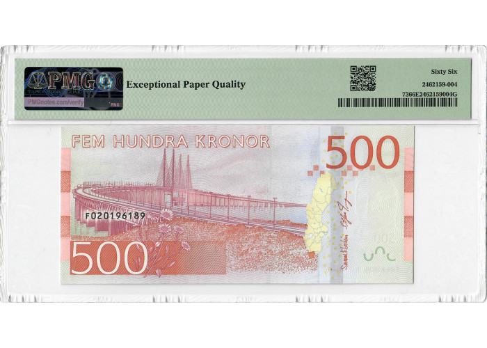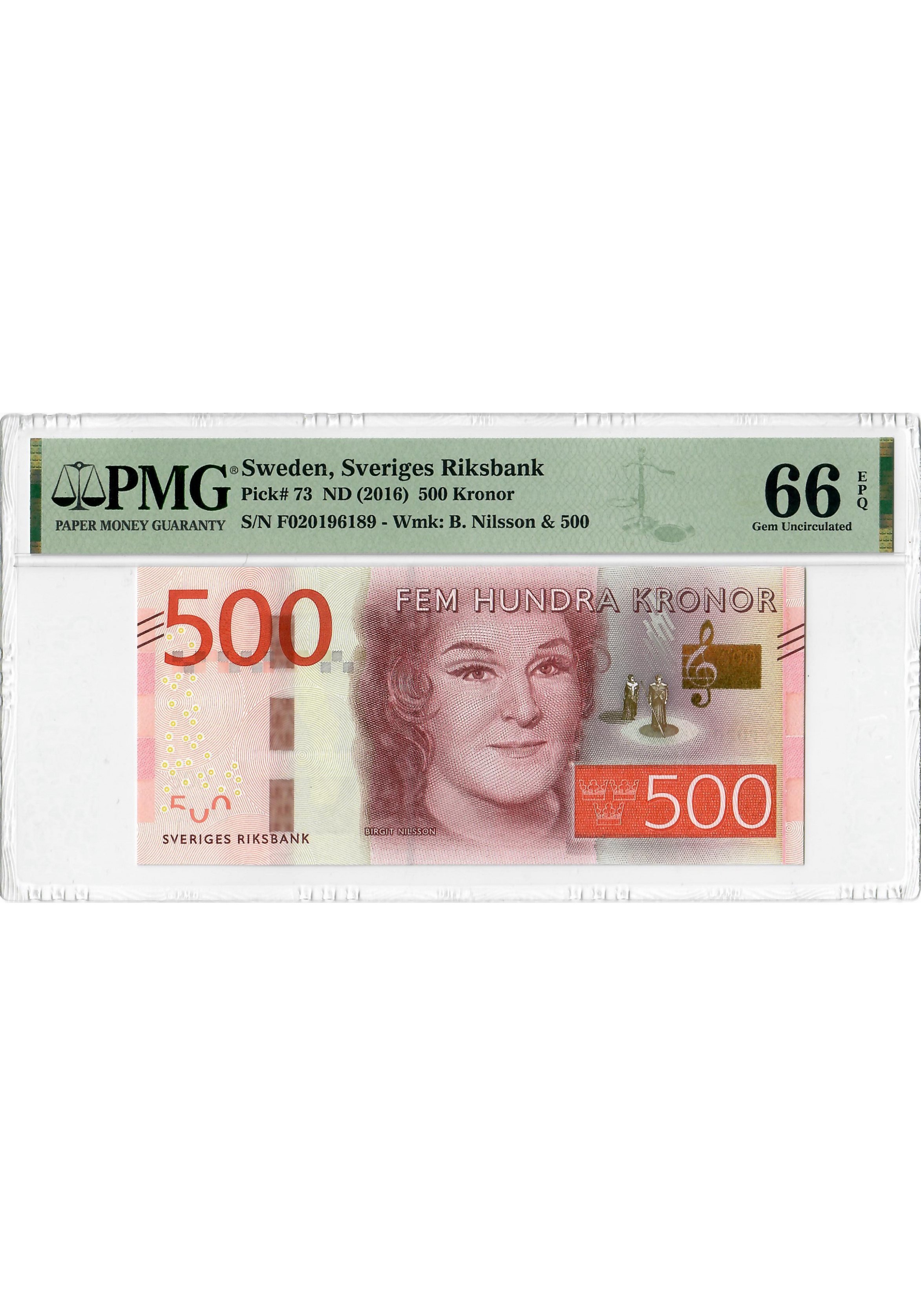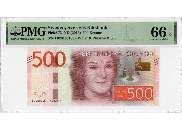 Sweden 500 Kronor ND (2016), PMG 66 EPQ, "Sveriges Riksbank" Pick# 73
