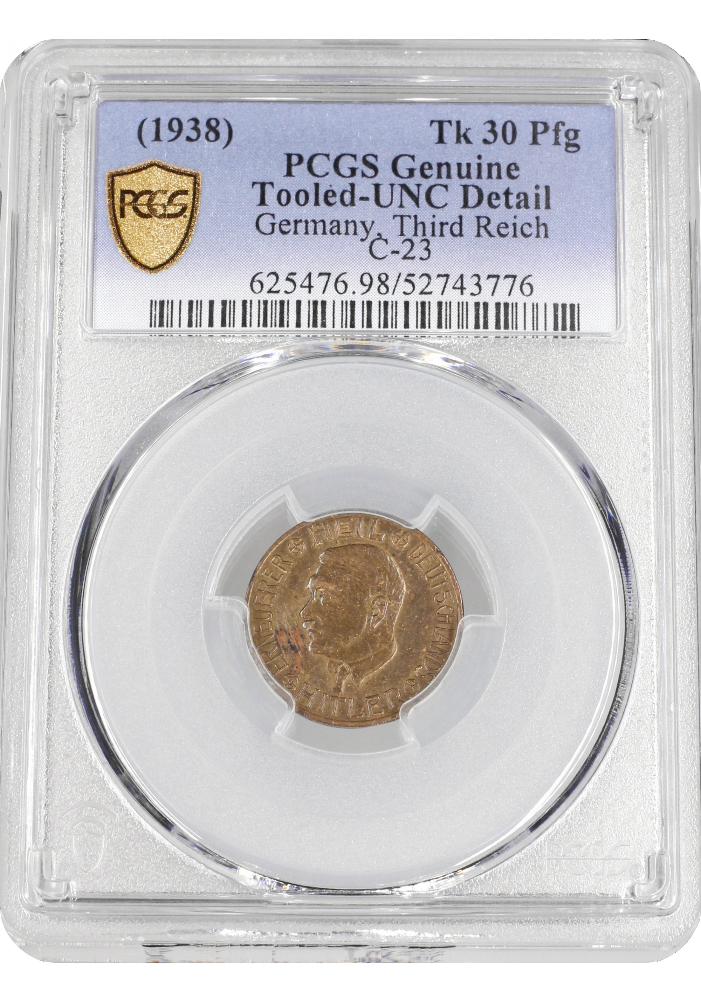 Germany - Third Reich 30 pfennig 1938, PCGS UNC Det., "Hitler Donation Token"