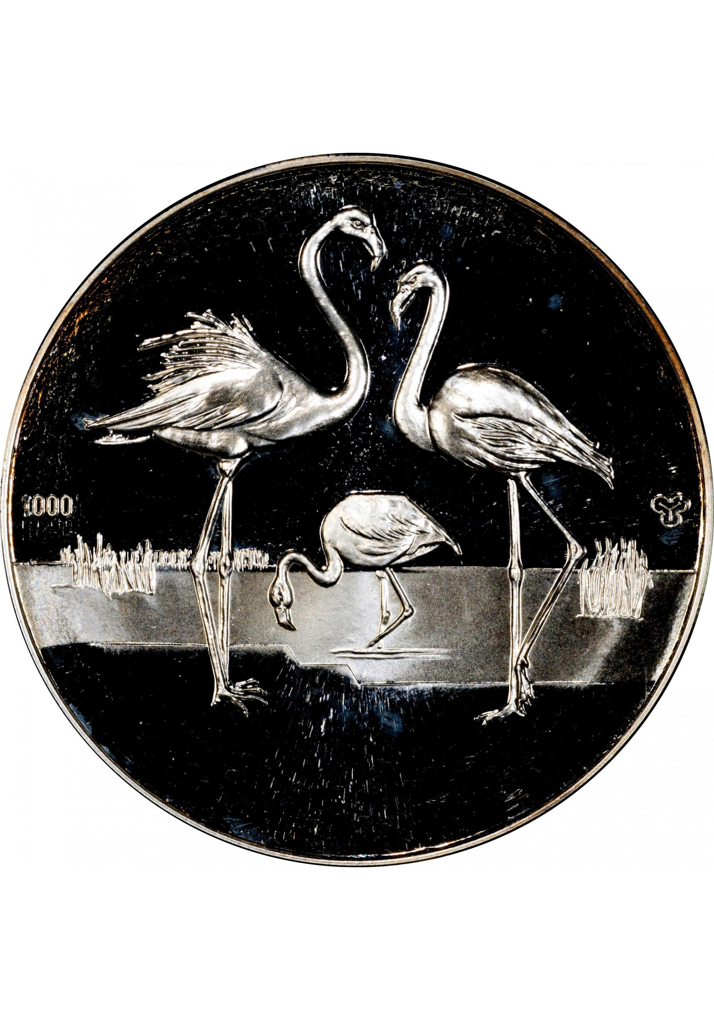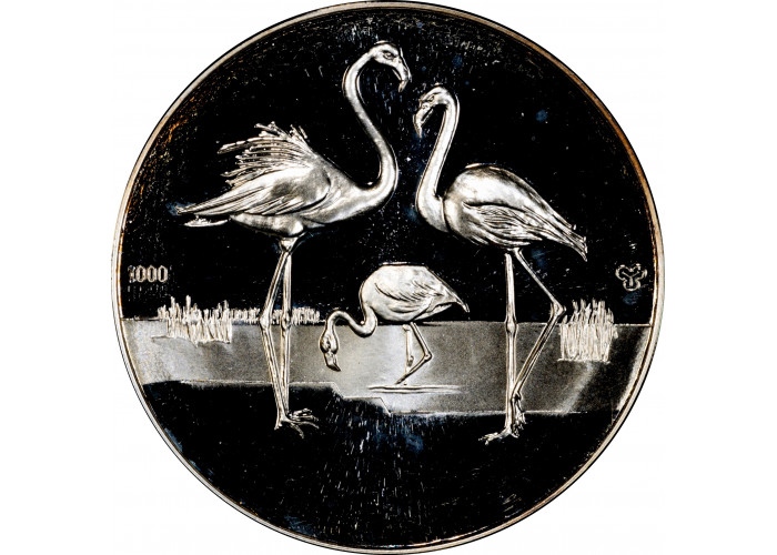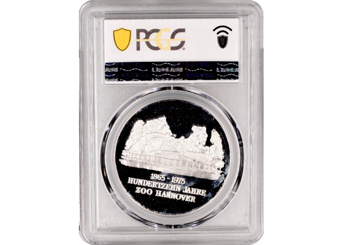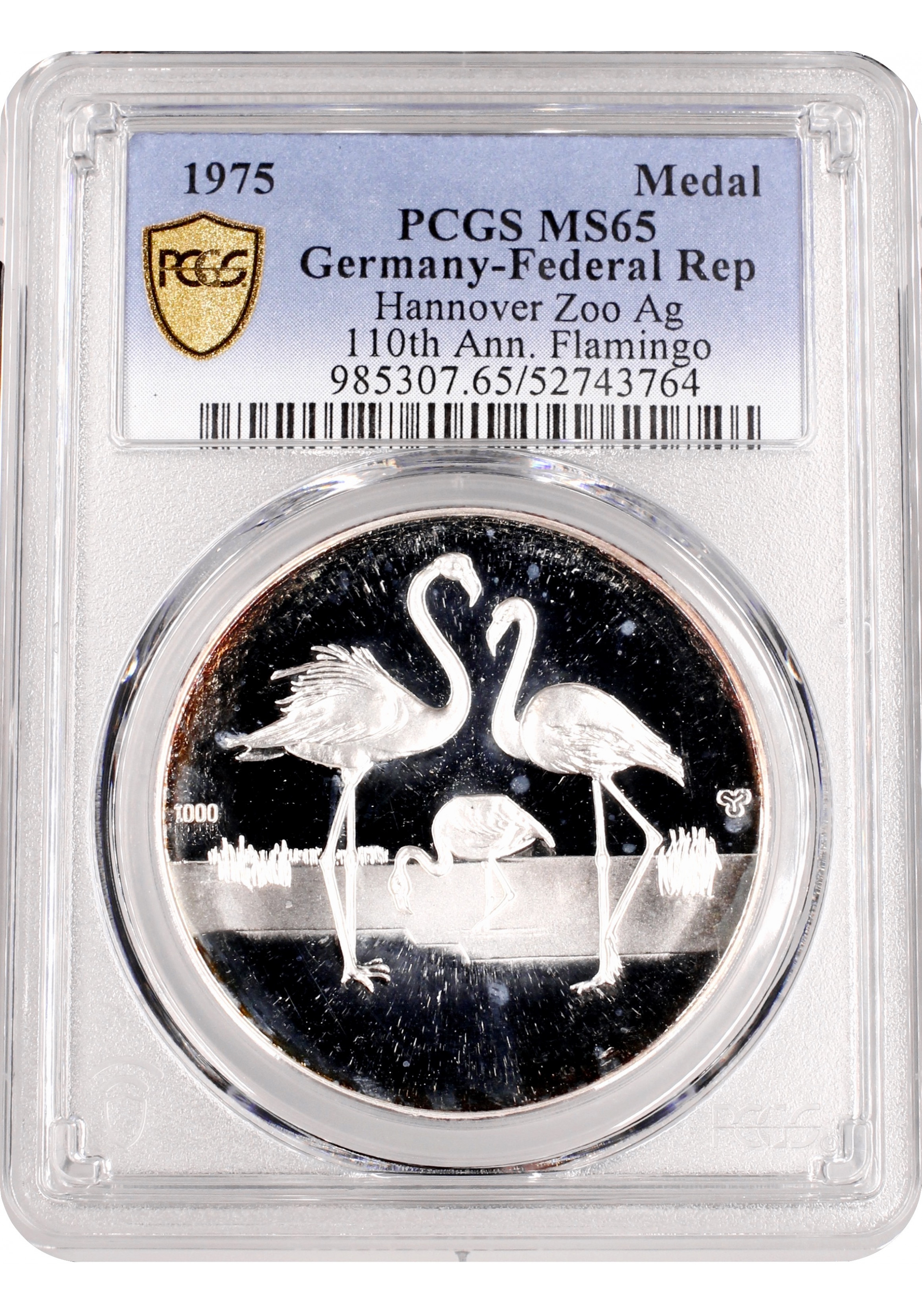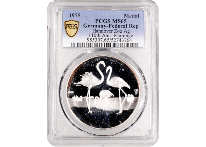Germany - FRG silver medal 1975, PCGS MS65, "110th Ann. Hannover Zoo - Flamingo"