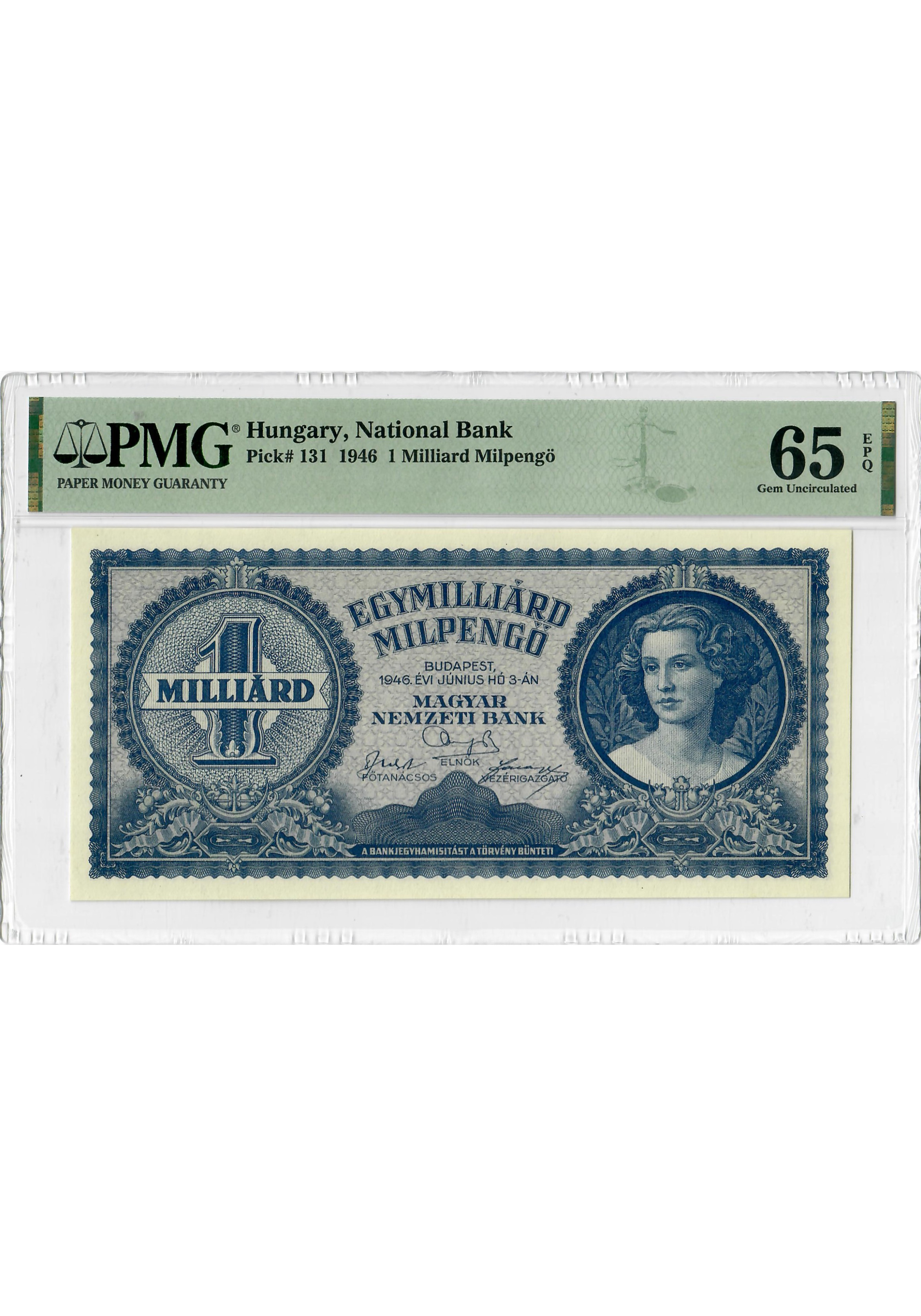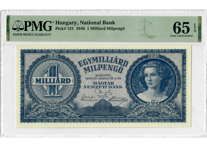 Hungary 1 Milliard Milpengo 1946, PMG 65 EPQ, "National Bank" Pick# 131