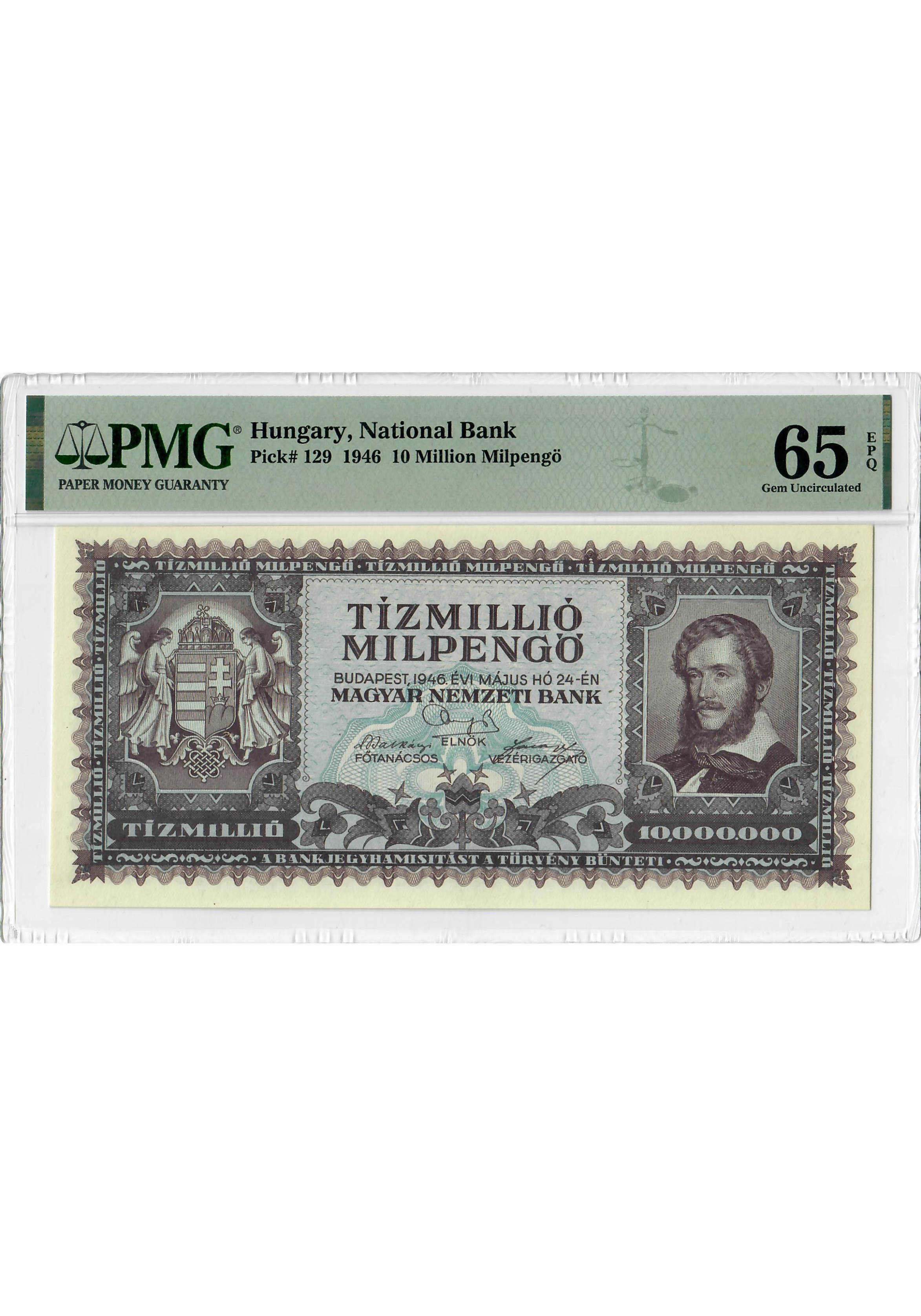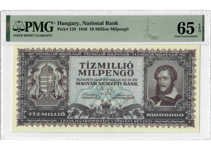 Hungary 10 Million Milpengo 1946, PMG 65 EPQ, "National Bank" Pick# 129