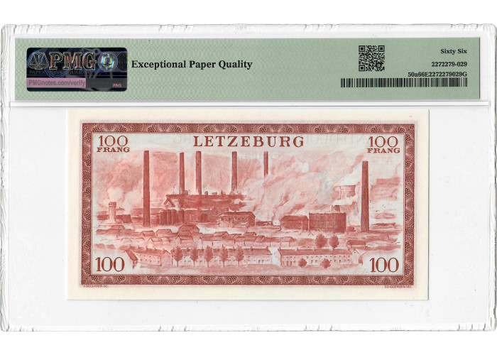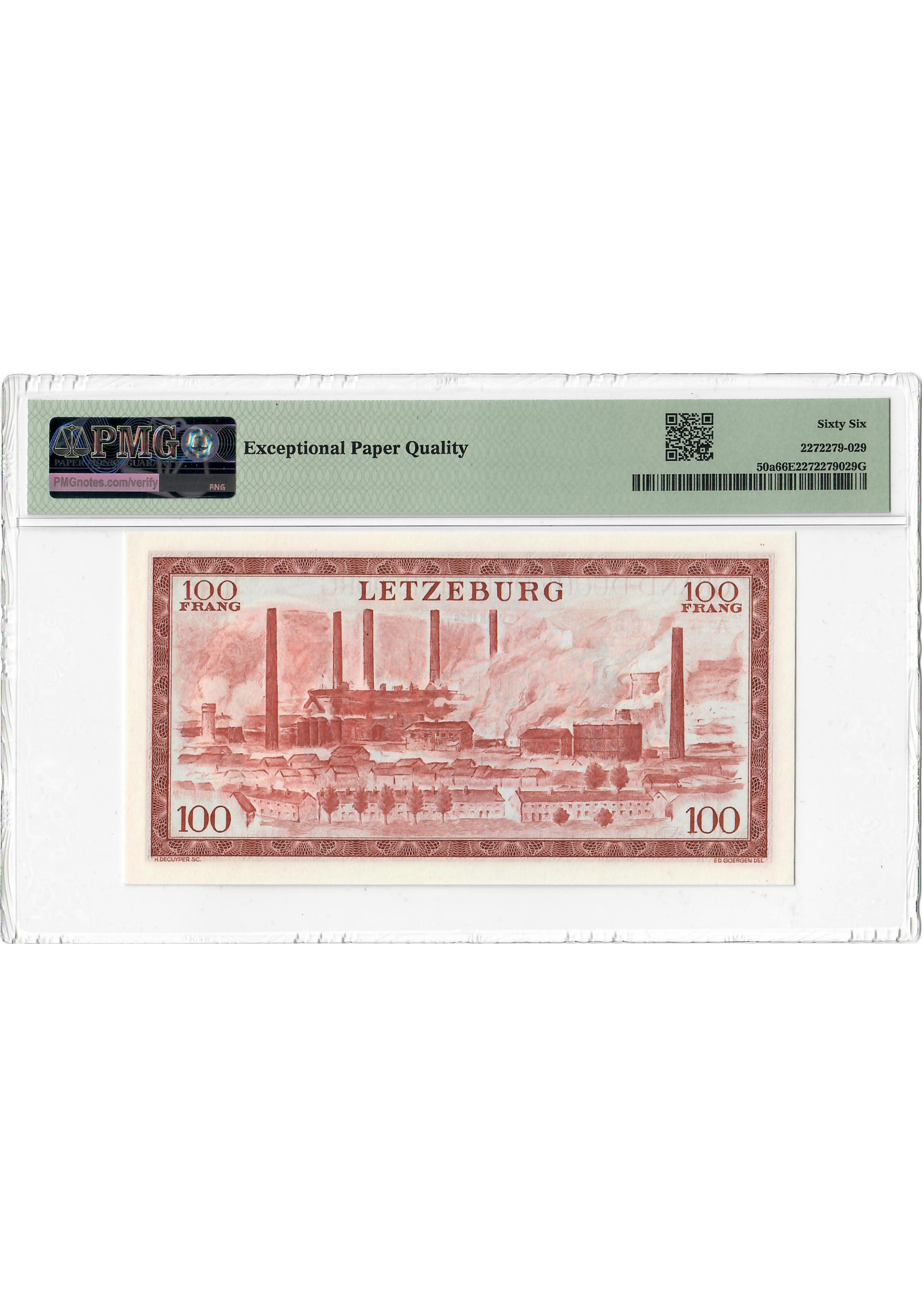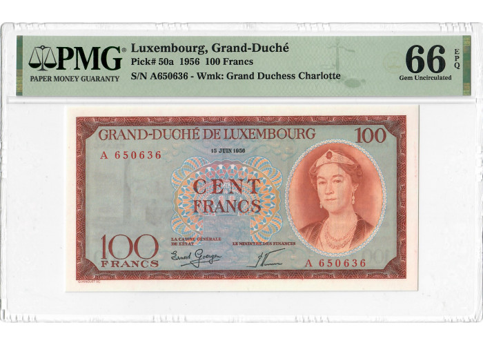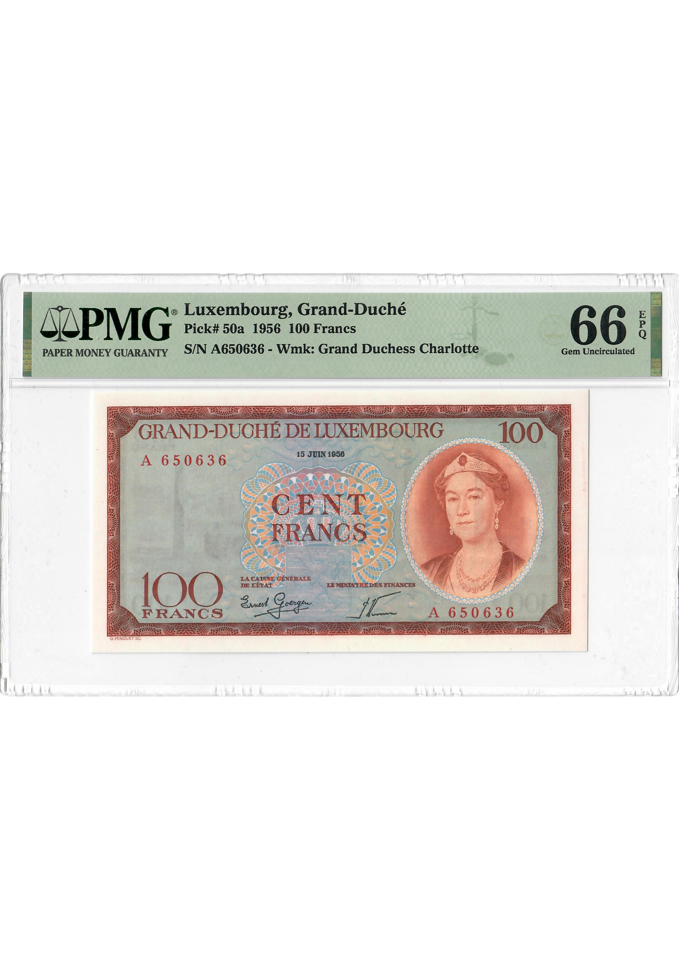 Luxembourg 100 Francs 1956, PMG 66 EPQ, "Grand-Duché" Pick# 50
