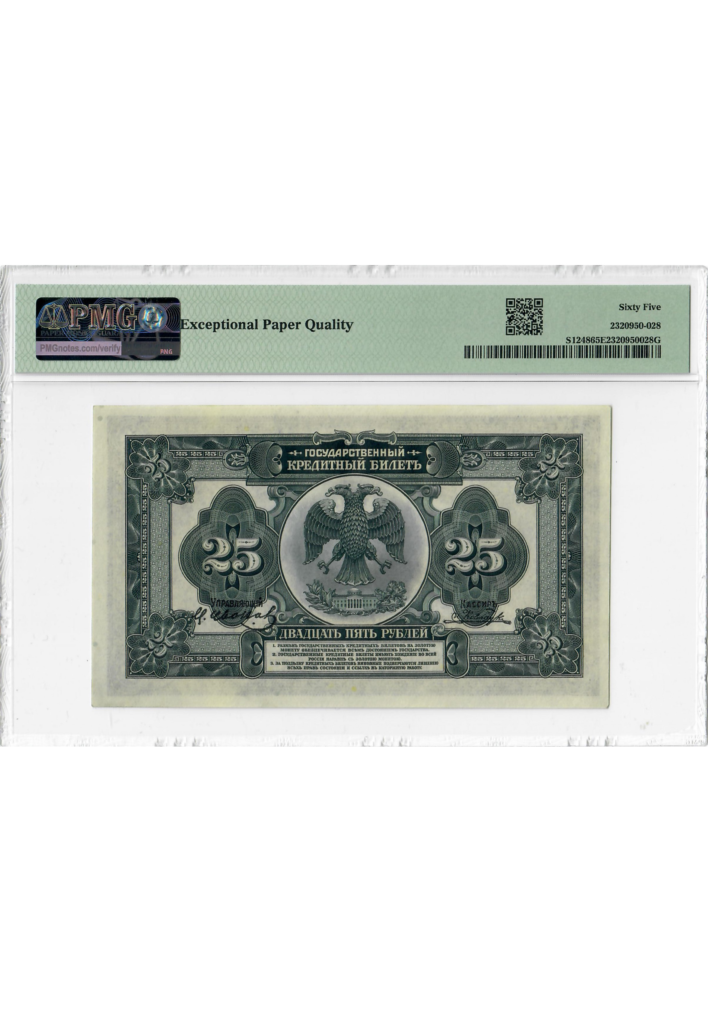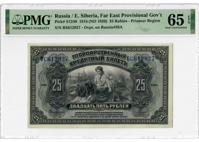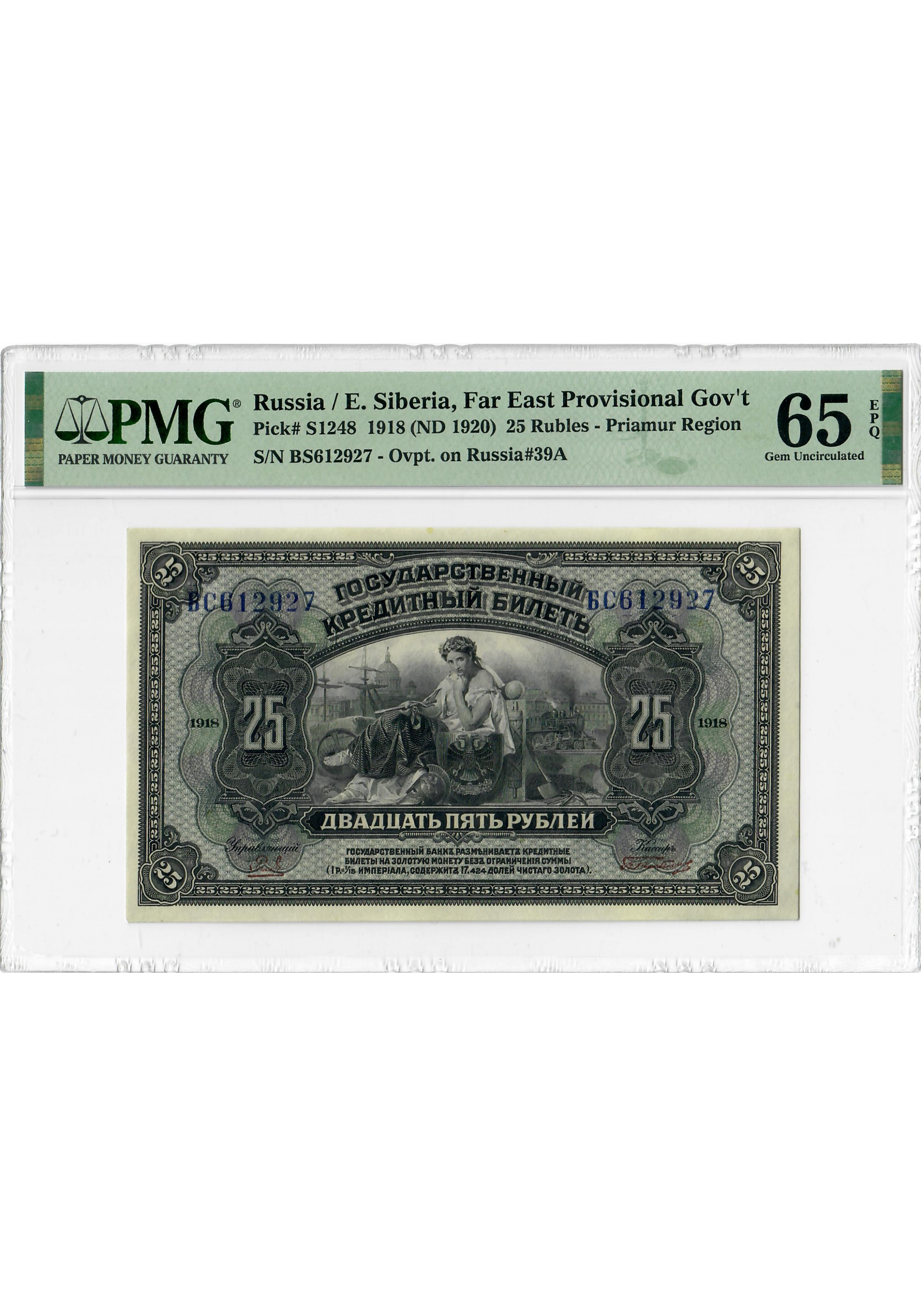 Russia 25 Rubles 1918 (ND 1920), PMG 65 EPQ, "East Siberia Government" P# S1248