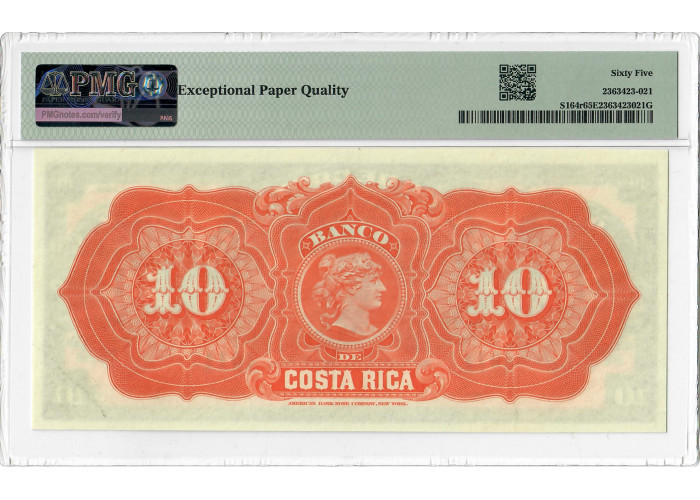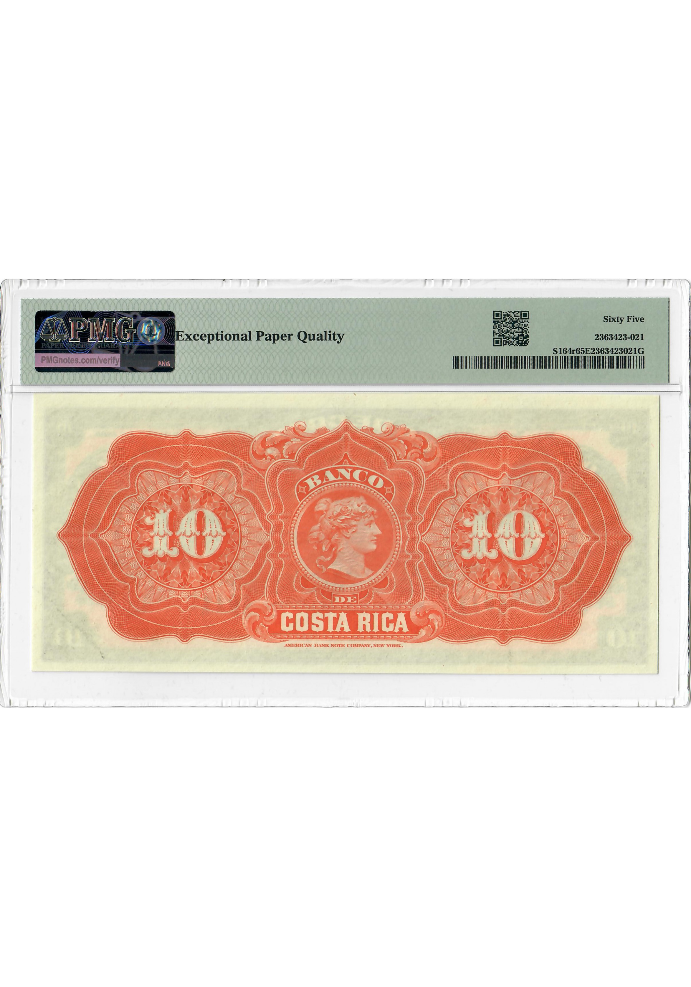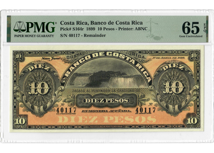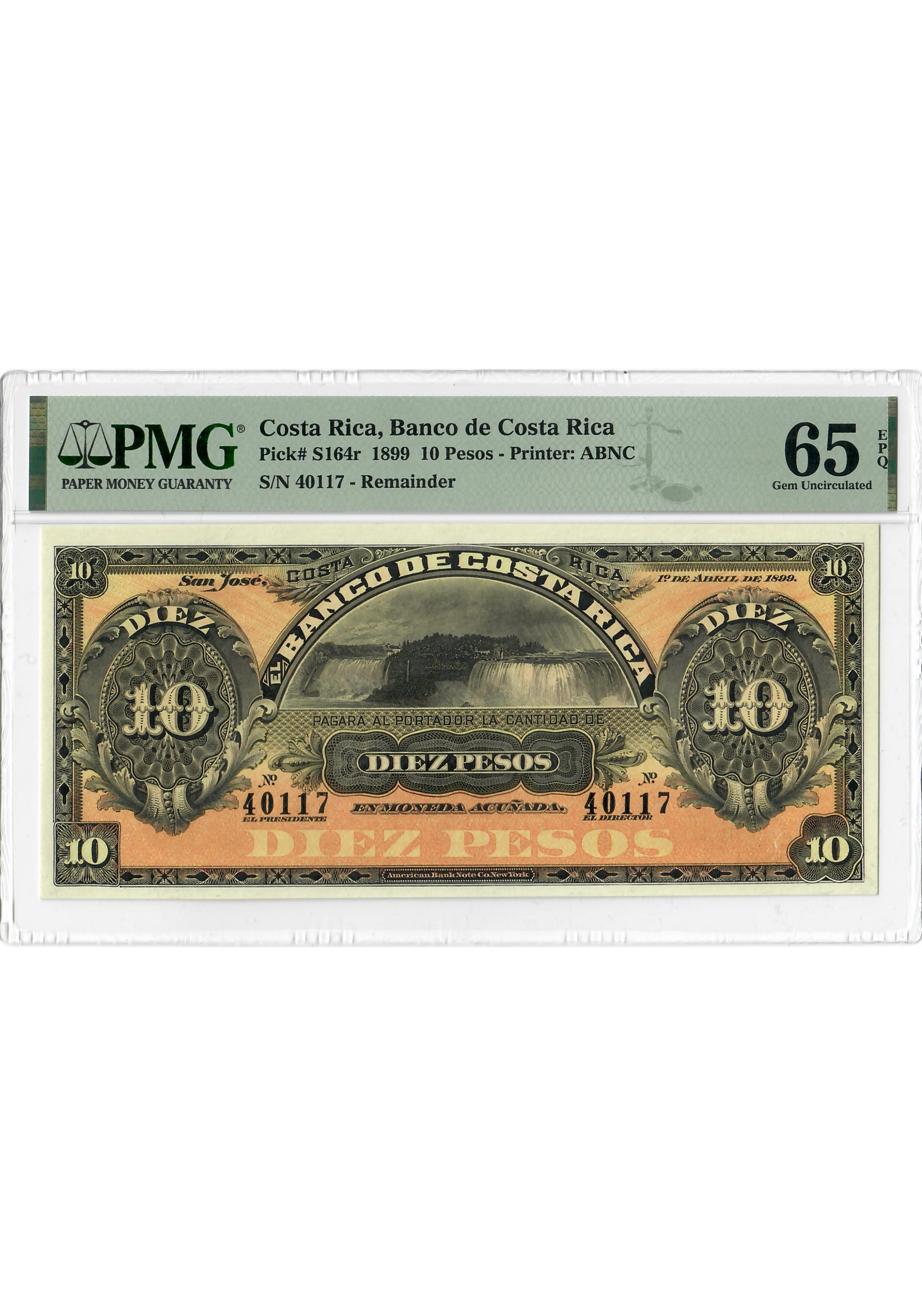Costa Rica 10 Pesos 1899, PMG 65 EPQ, "Banco de Costa Rica" Pick# S164r