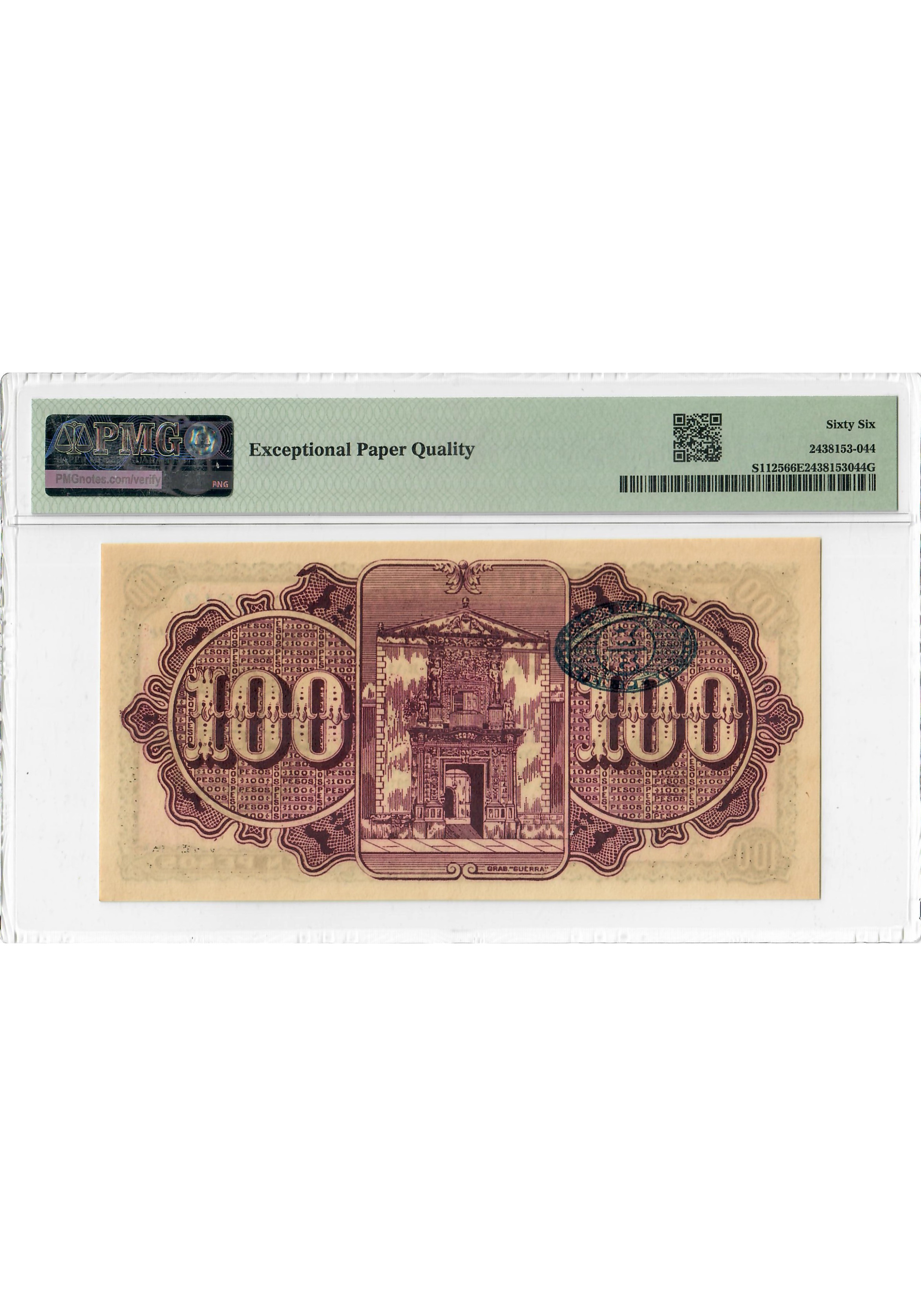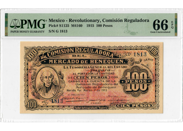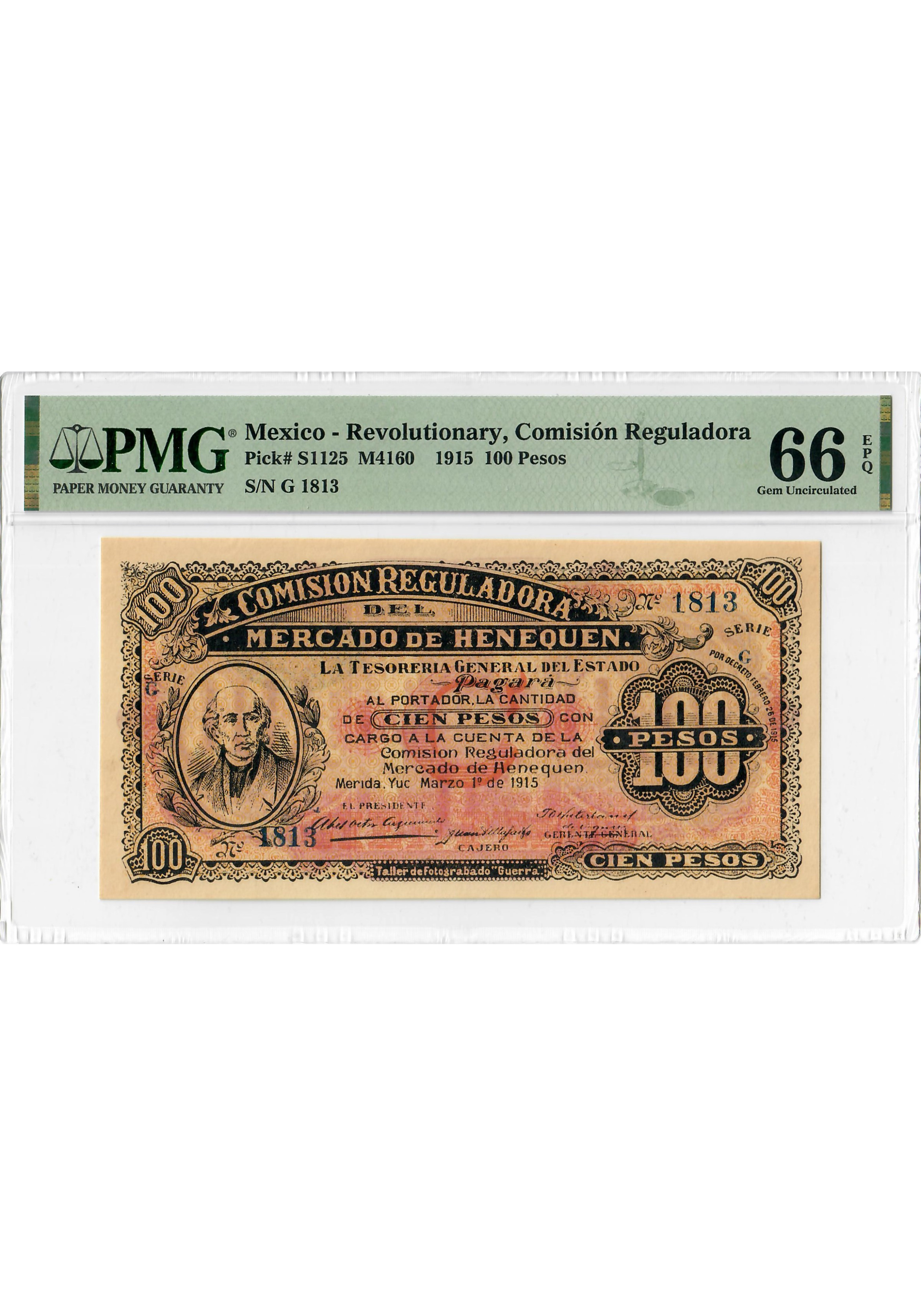 Mexico 100 Pesos 1915, PMG 66 EPQ, "Revolutionary Comision Reguladora" P# S1125 Top Pop
