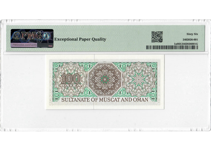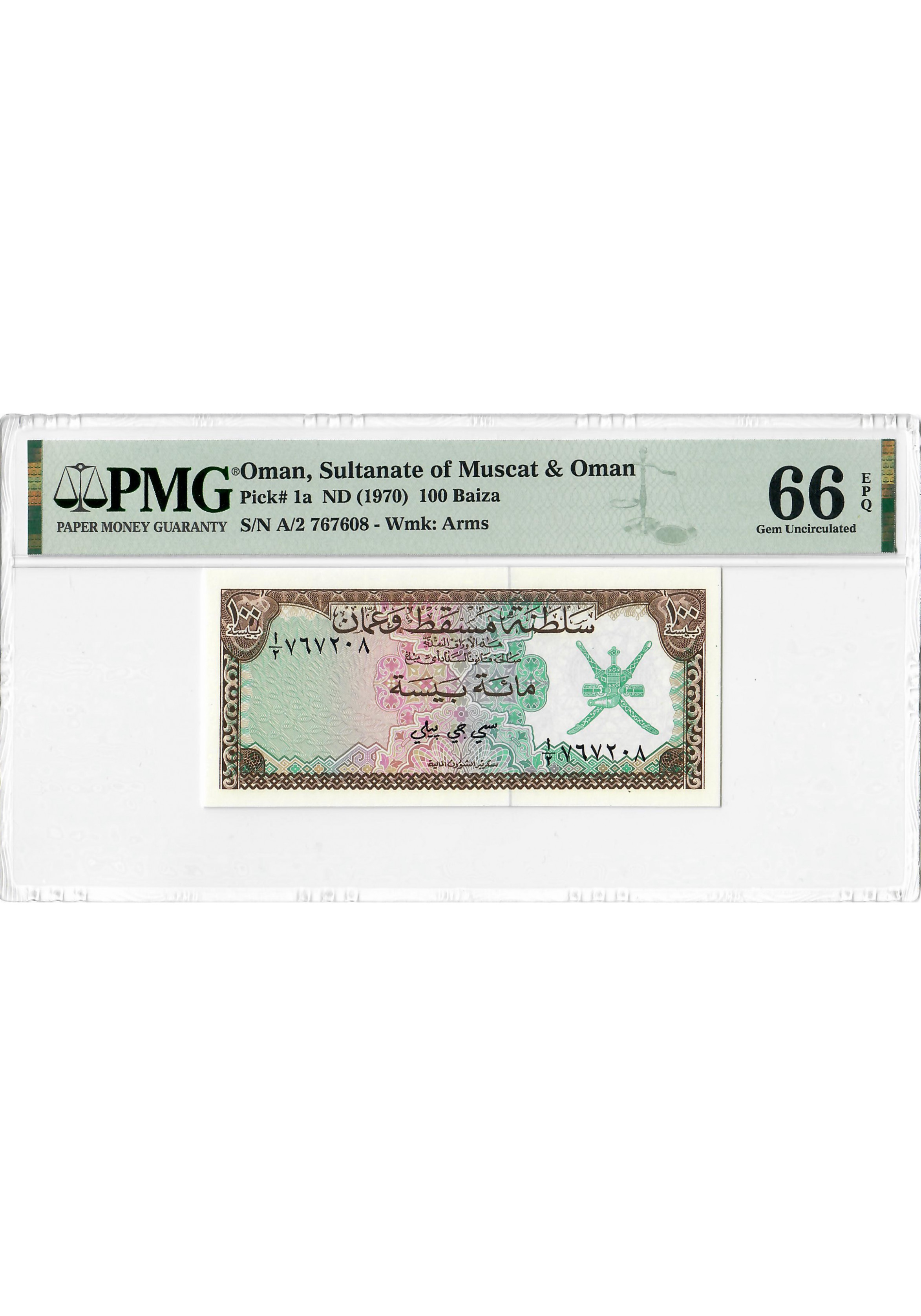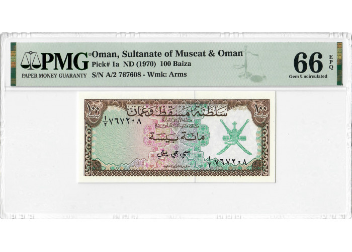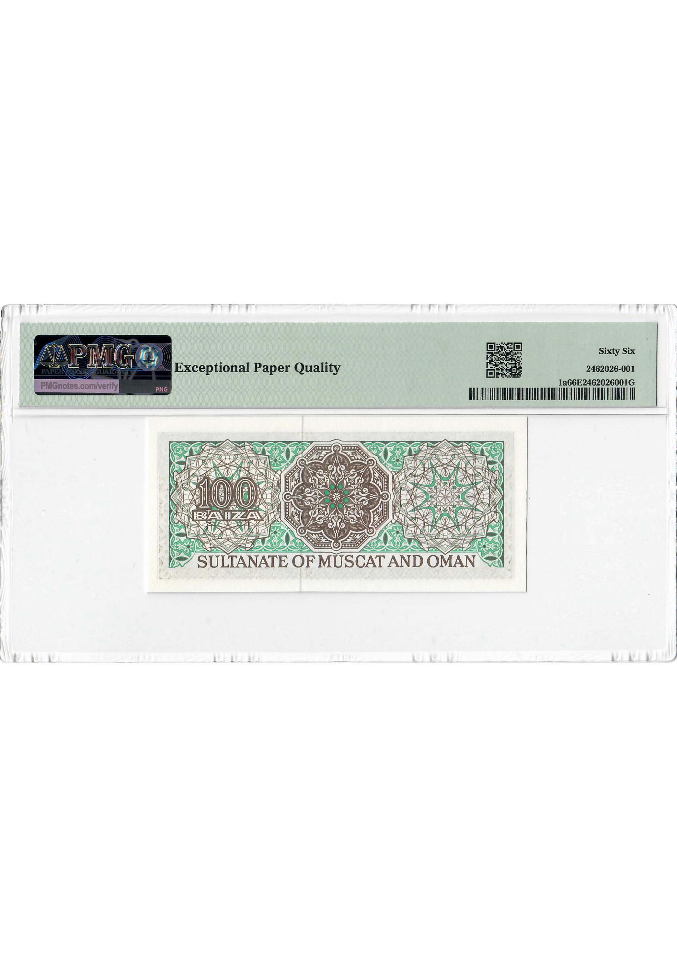 Оман 100 Байза ND (1970), PMG 66 EPQ, "Султанат Маскат і Оман" Pick# 1a