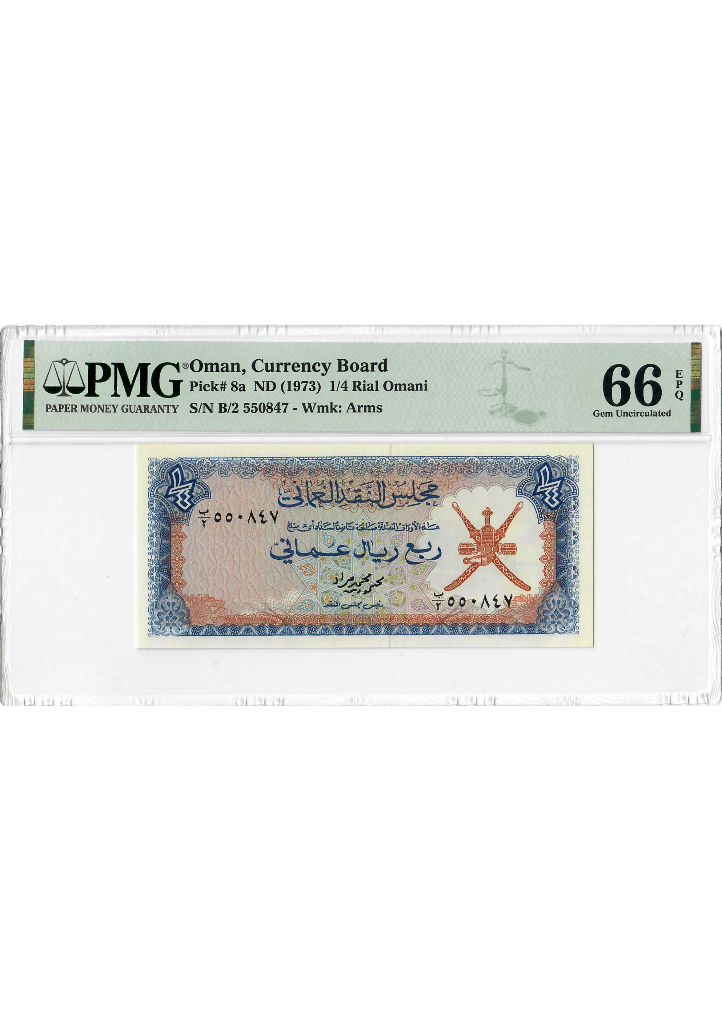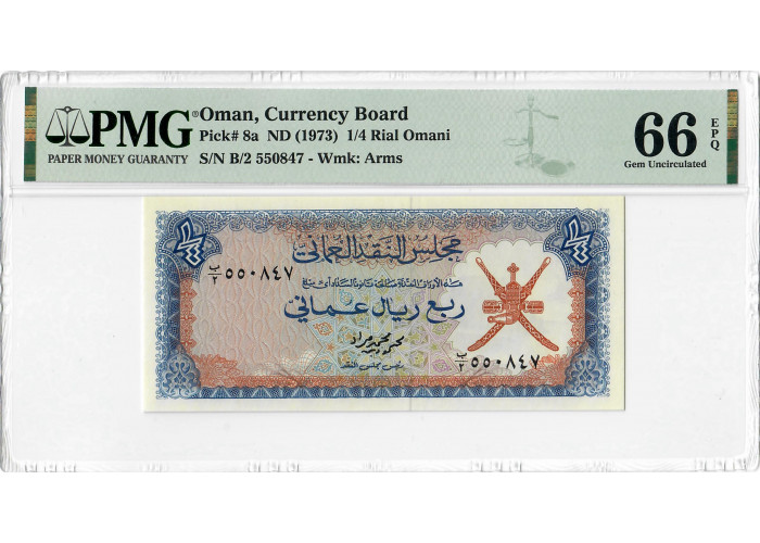 Оман 1/4 Ріал Омані ND (1973), PMG 66 EPQ, "Валютна рада" Pick# 8a