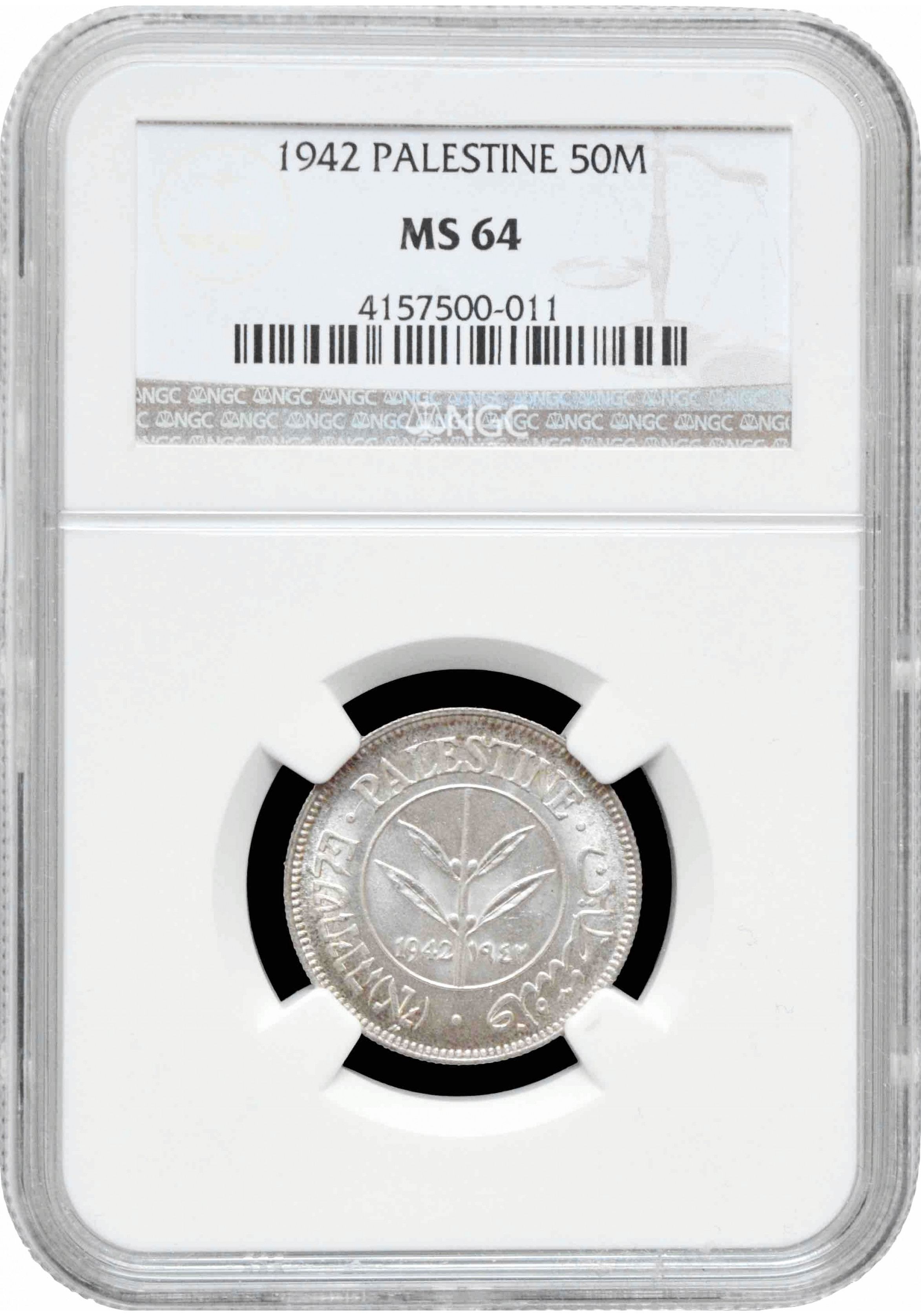 Палестина 50 милей 1942 г., NGC MS64, "Британский мандат (1927 - 1948)"