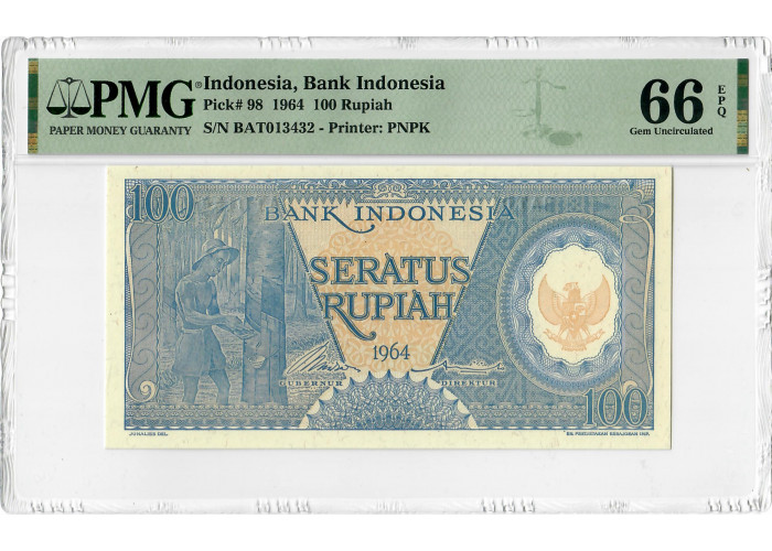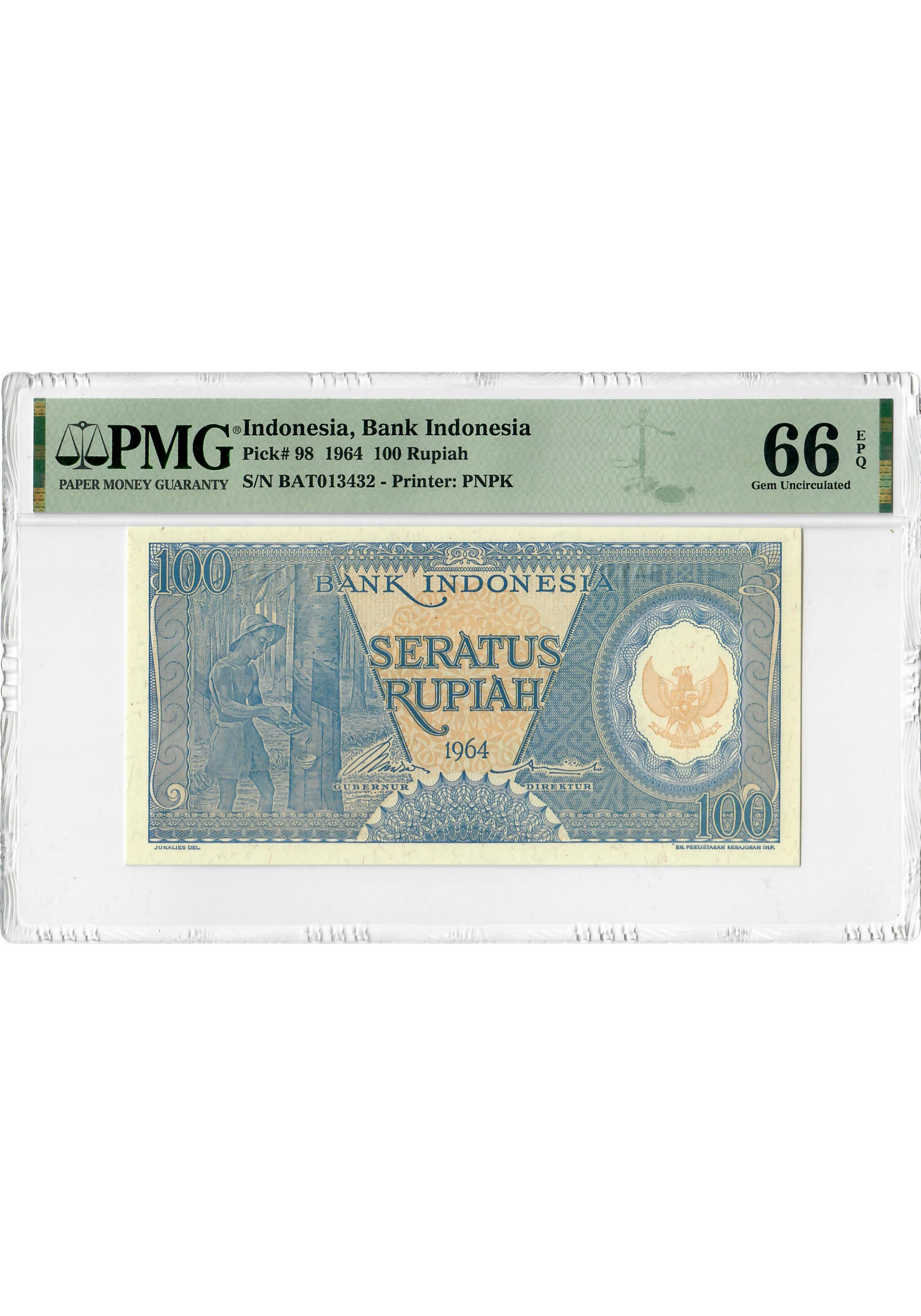 Індонезія 100 рупій 1964, PMG 66 EPQ, "Bank Indonesia" Pick# 98