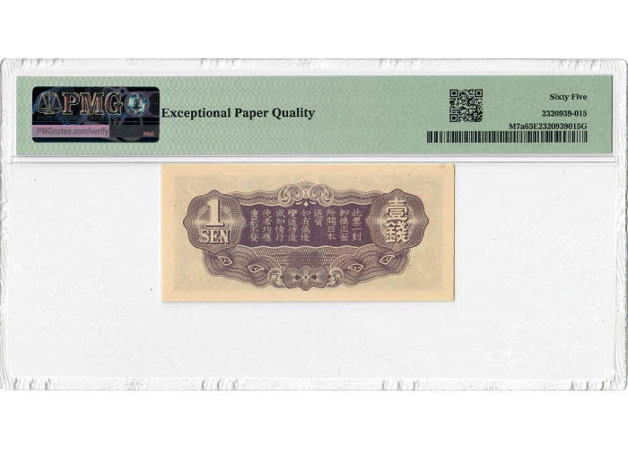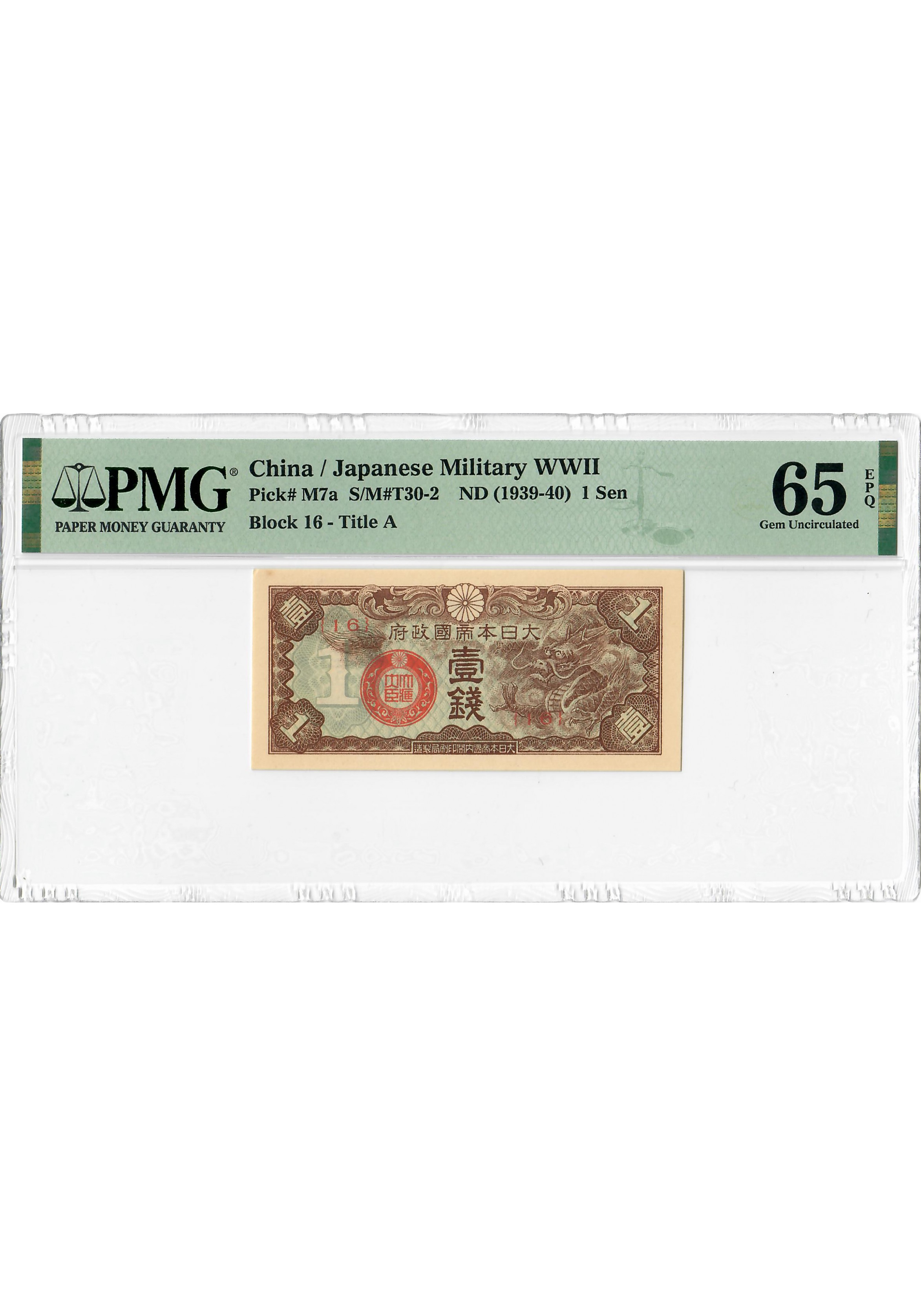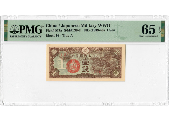 Китай / Японія 1 вересня 1939-40, PMG 65 EPQ, "Військова Друга світова війна" Pick# M7a