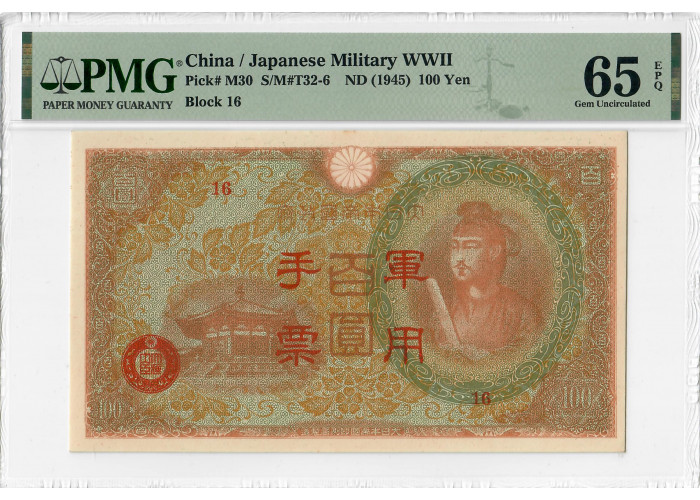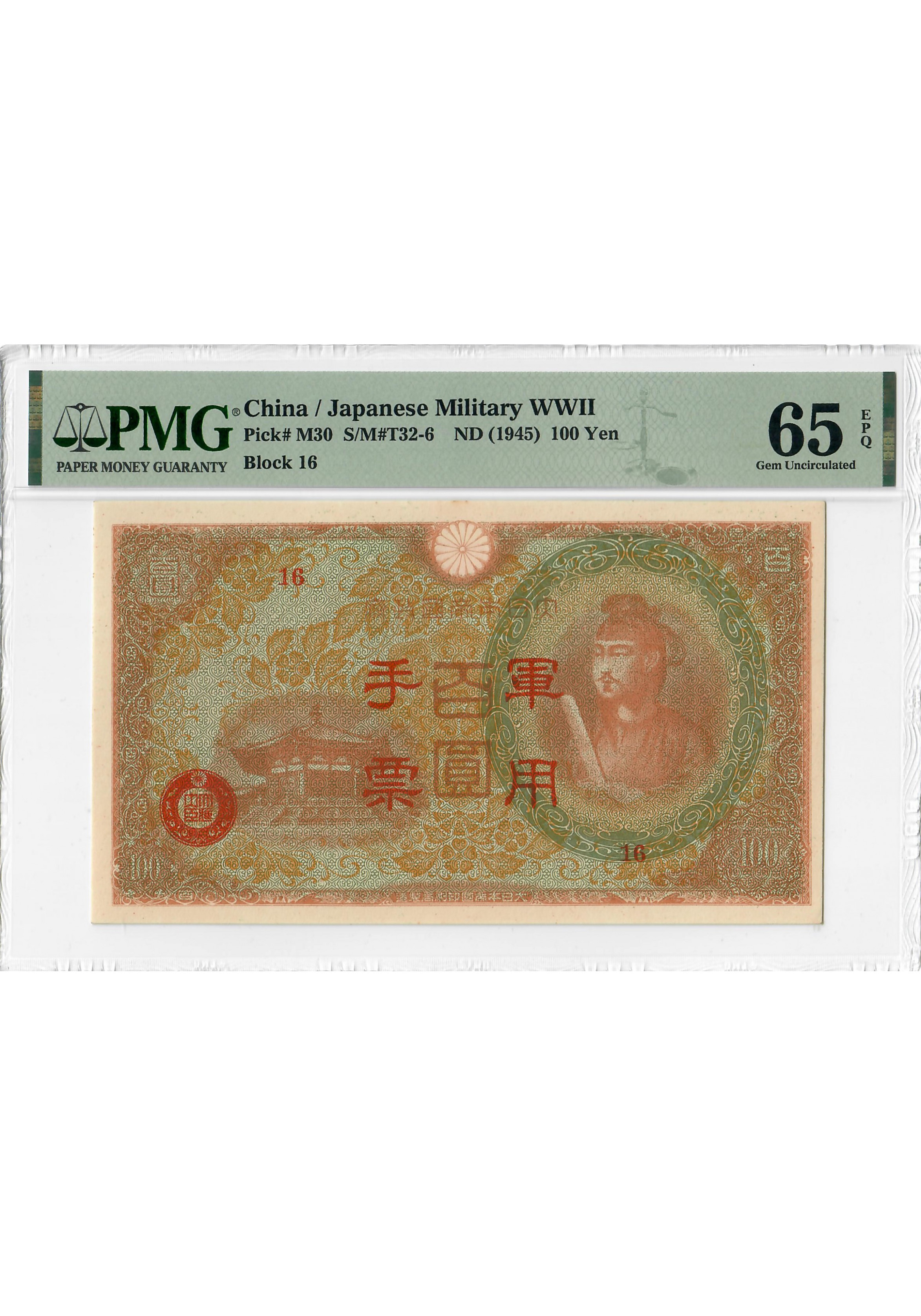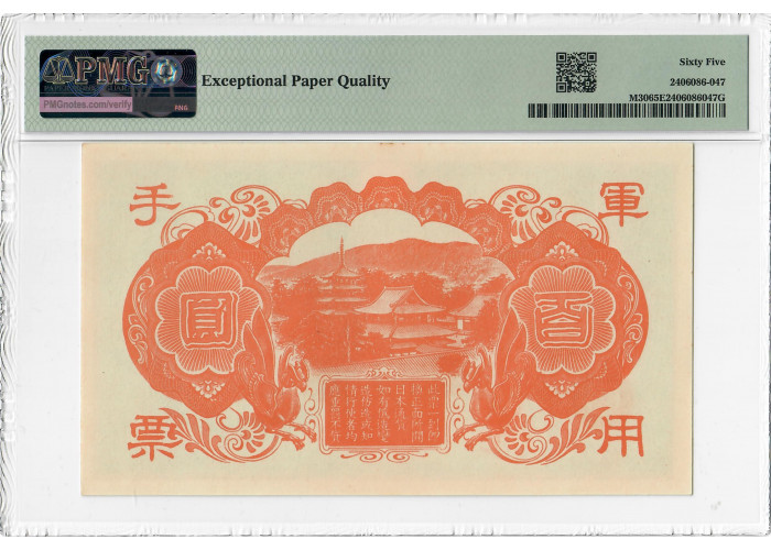 Китай / Японія 100 єн 1945, PMG 65 EPQ, "Військова Друга світова війна", Pick# M30
