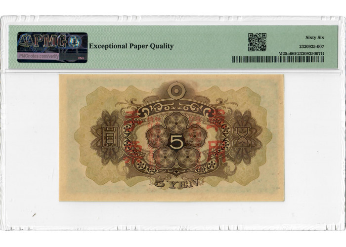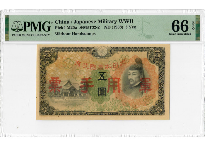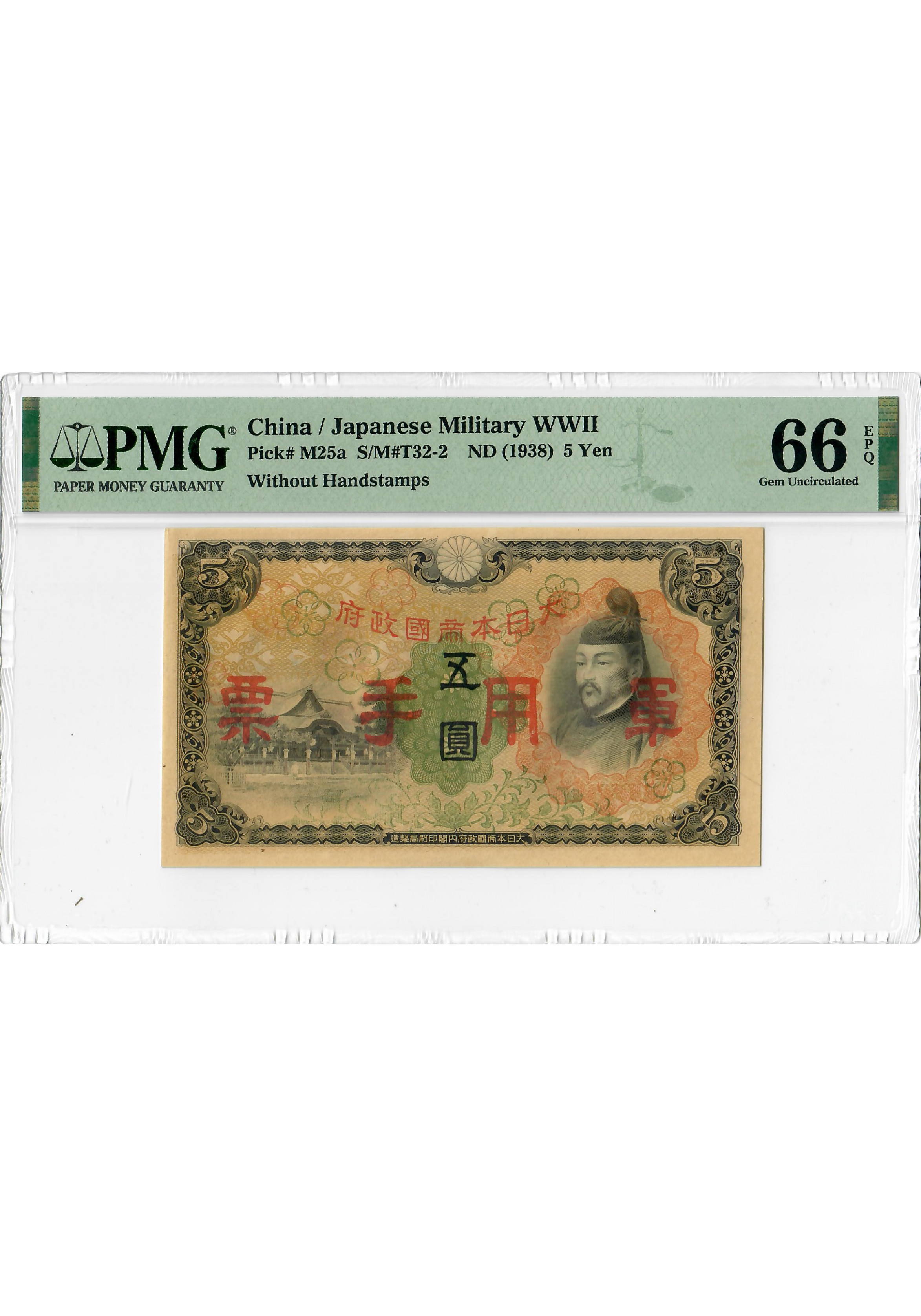 Китай / Японія 5 єн 1938, PMG 66 EPQ, "Військова Друга світова війна" Pick# M25a