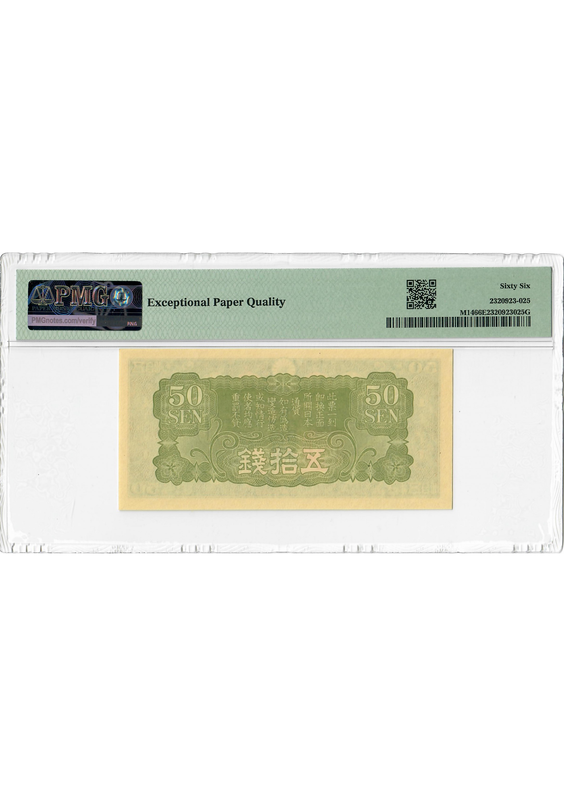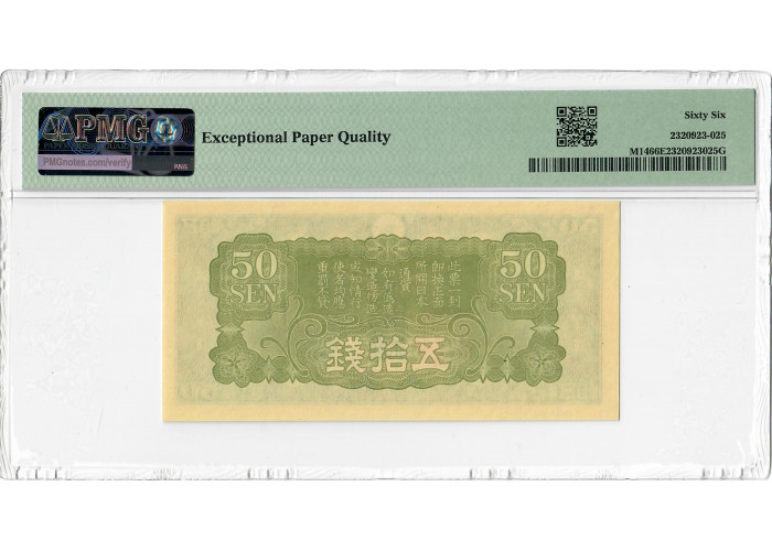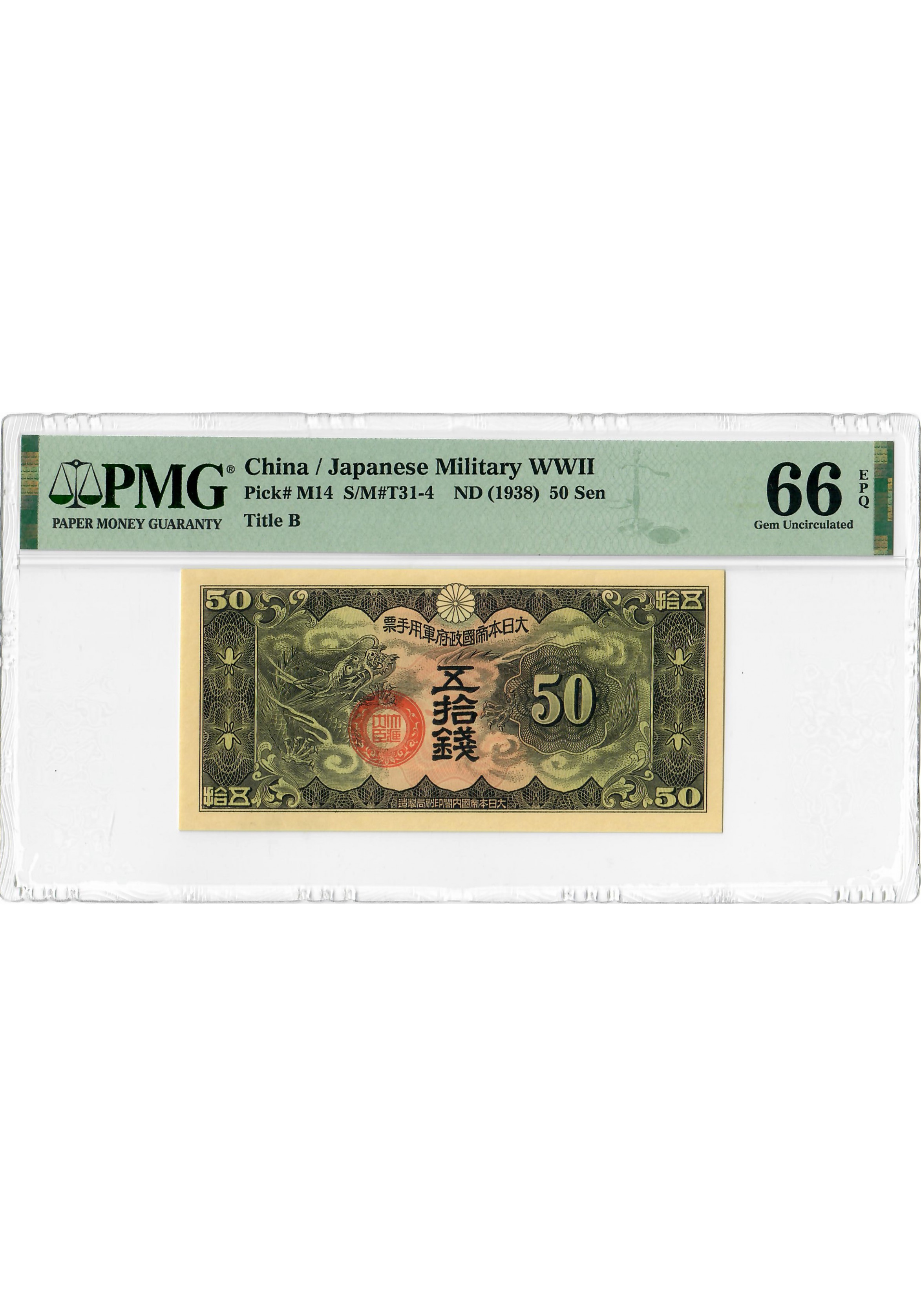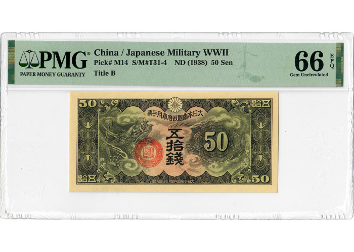Китай / Японія 50 вересня 1938, PMG 66 EPQ, "Військова Друга світова війна" Pick# M14