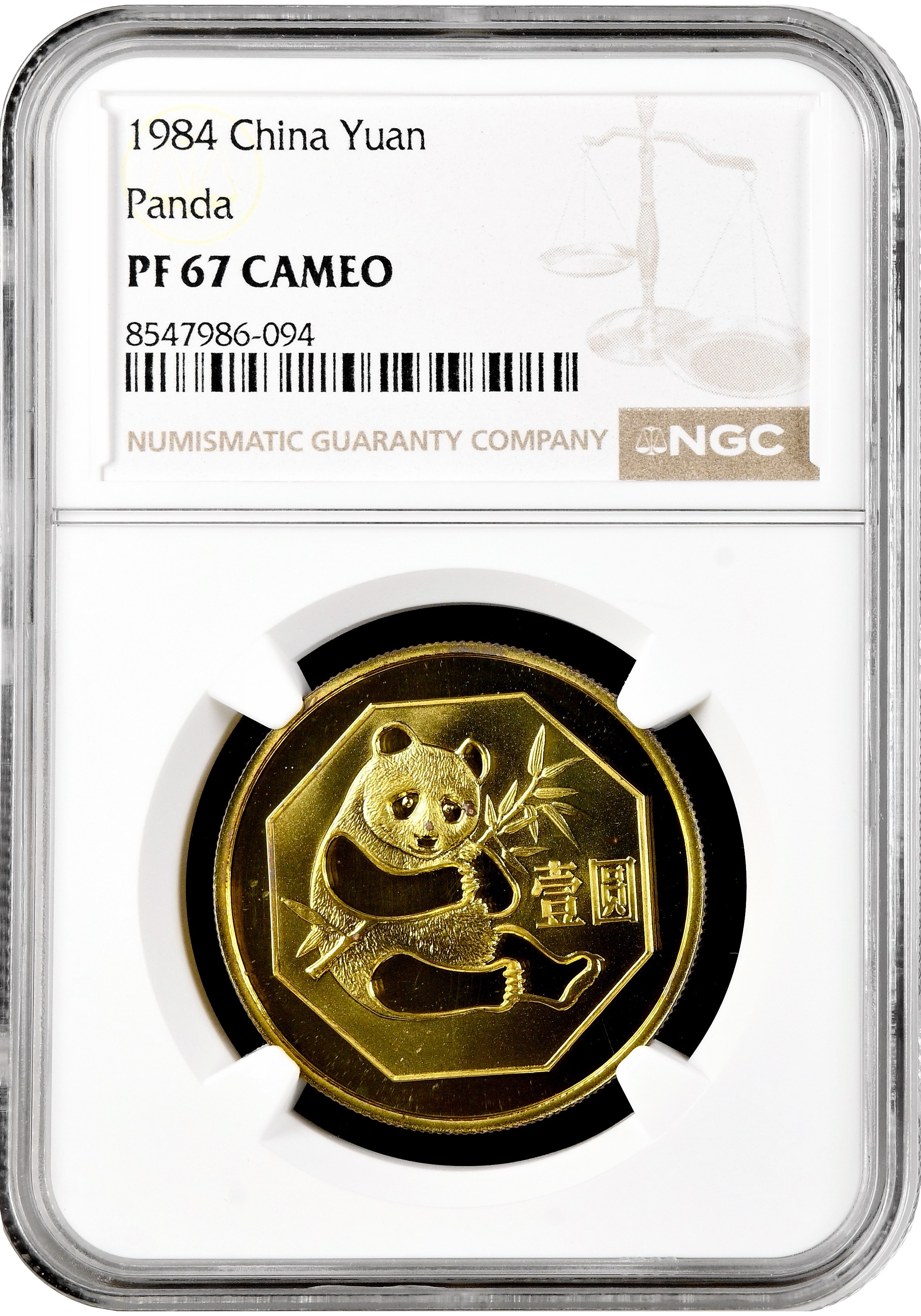 Китай 1 юань 1984 г., NGC PF67 CAMEO, "Панда"