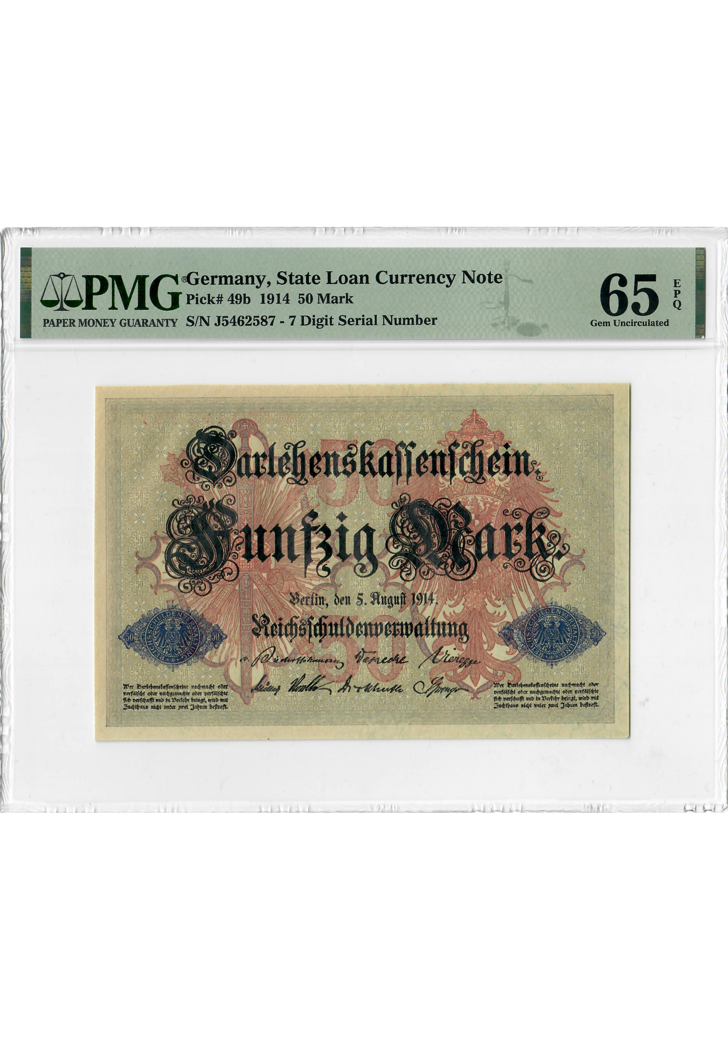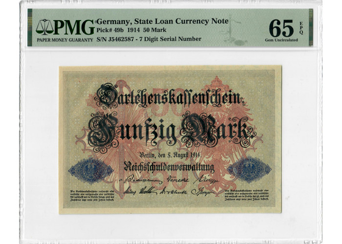 Німеччина 50 марок 1914, PMG 65 EPQ, "Державний позиковий банкнот", Pick# 49b
