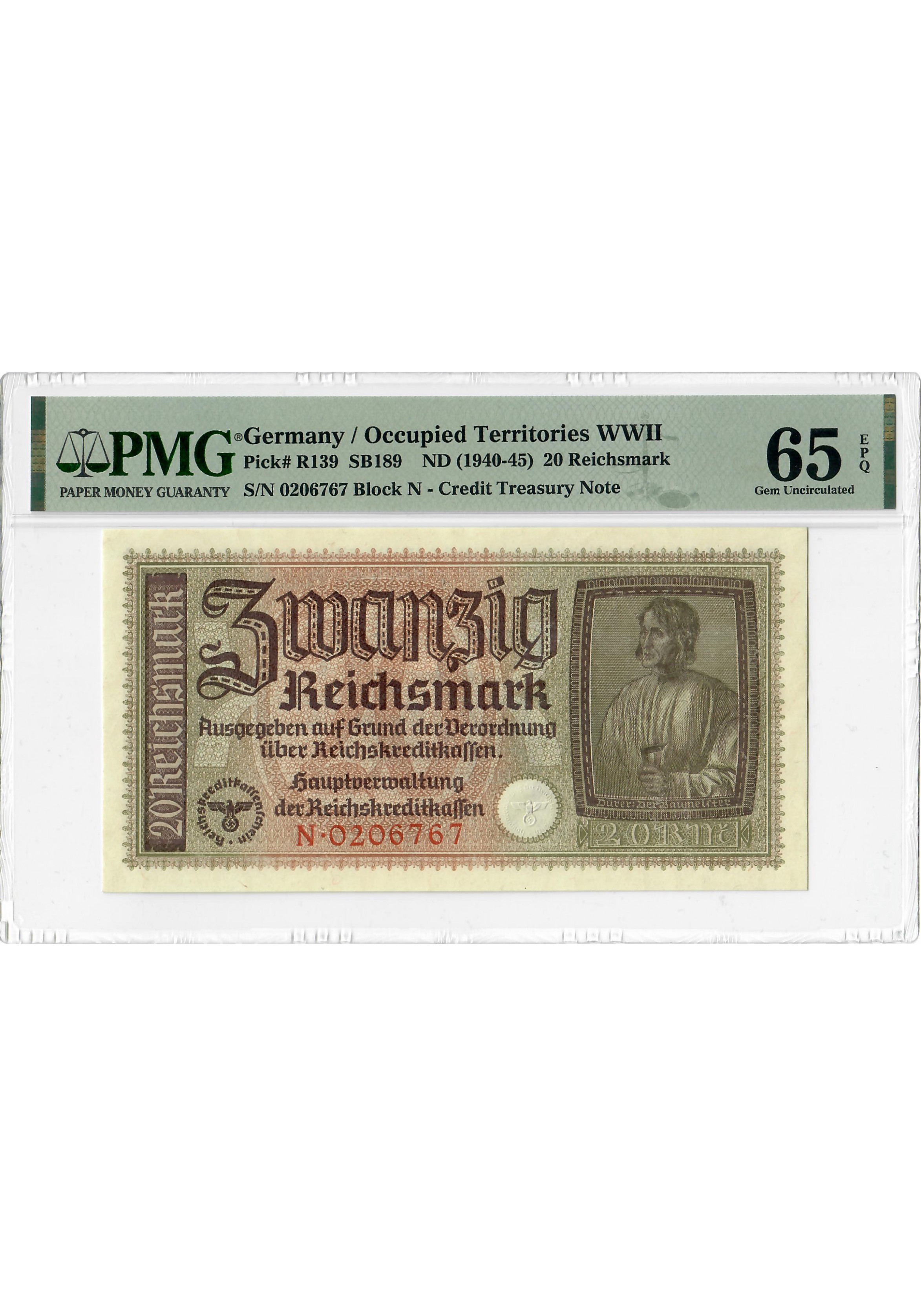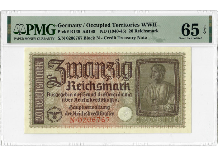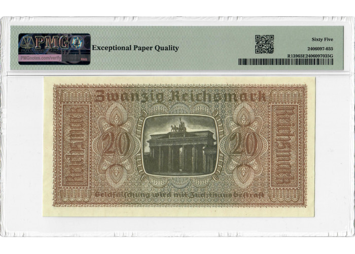 Німеччина 20 рейхсмарок ND (1940-1945), PMG 66 EPQ, "Друга світова війна" Pick# R139