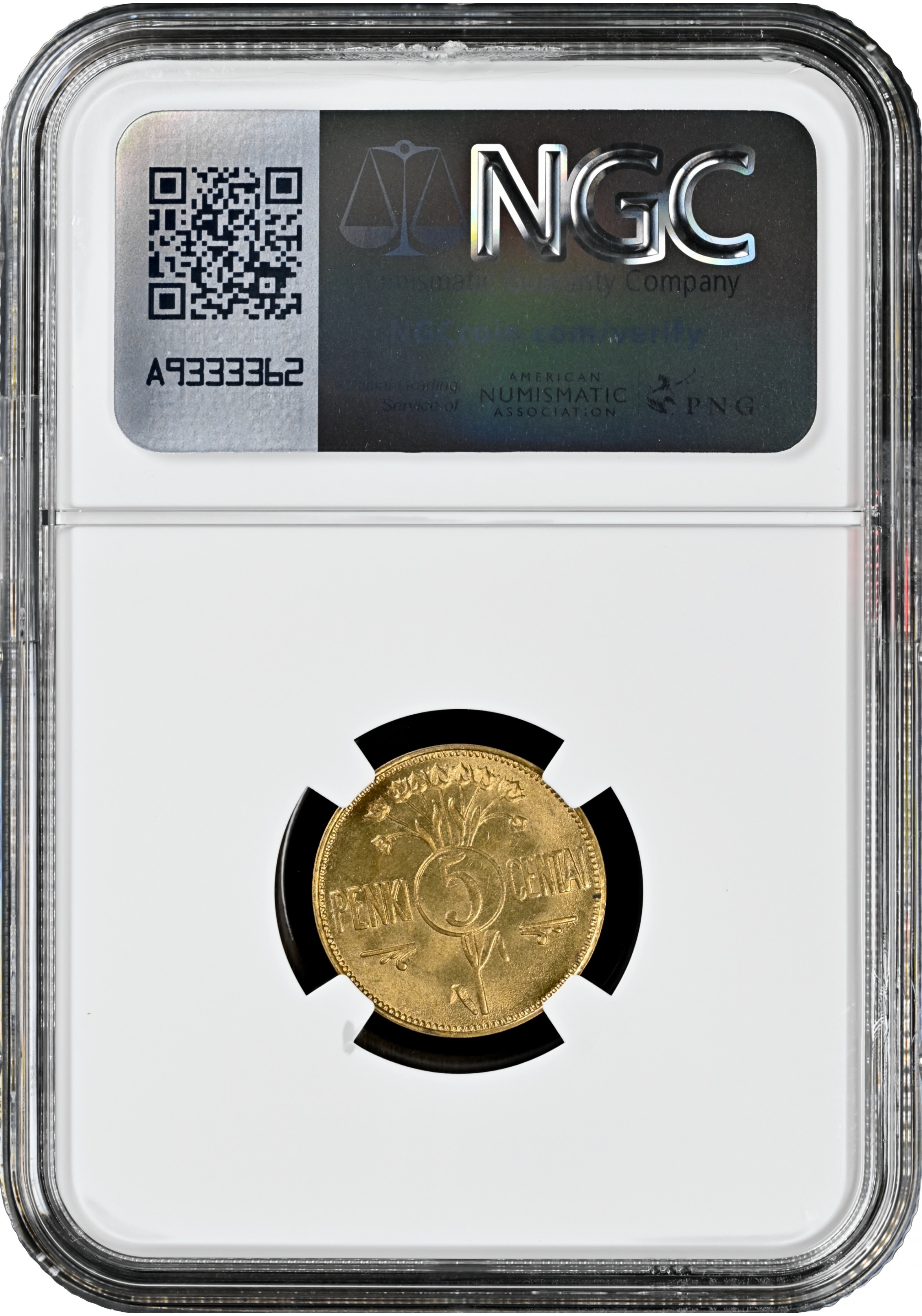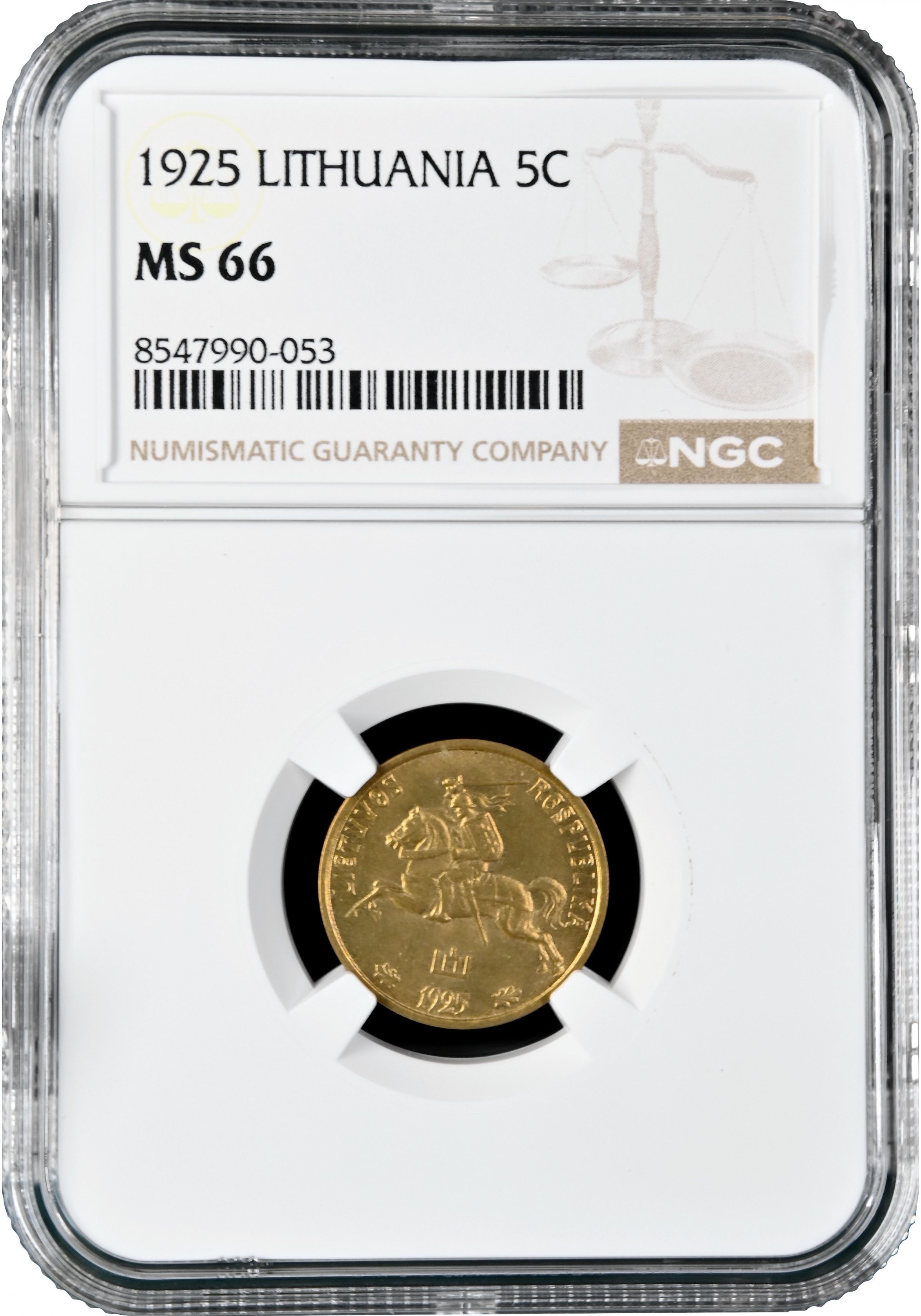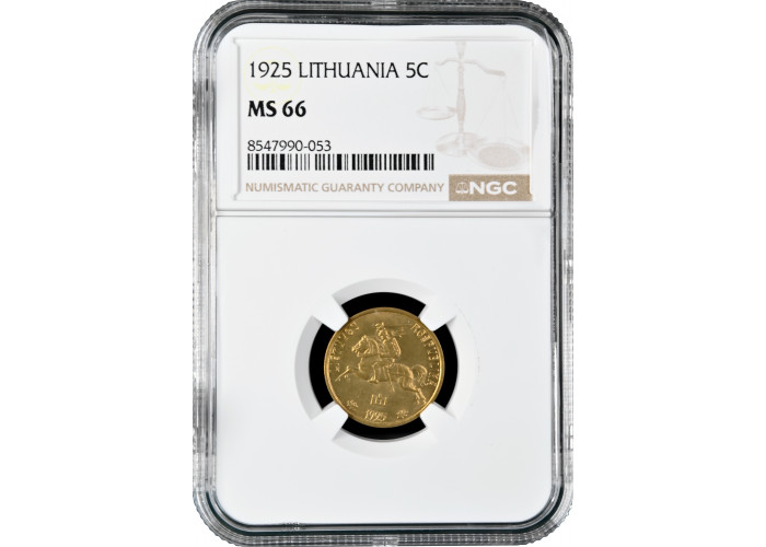 Литва 5 центов 1925 г., NGC MS66, "Первая Республика (1925 - 1938)"