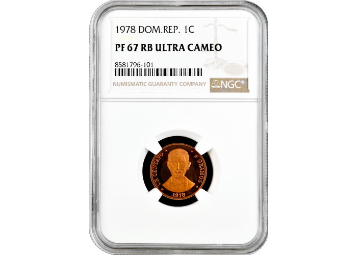 Доминикана 1 сентаво 1978 г., NGC PF67 RB UC, "Доминиканская Республика (1937 - 2022)"