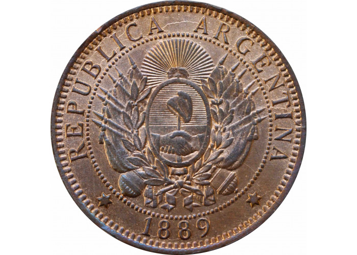 Аргентина 2 сентаво 1889 г., UNC, "Песо аргентинское (1881 - 1969)"