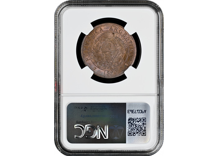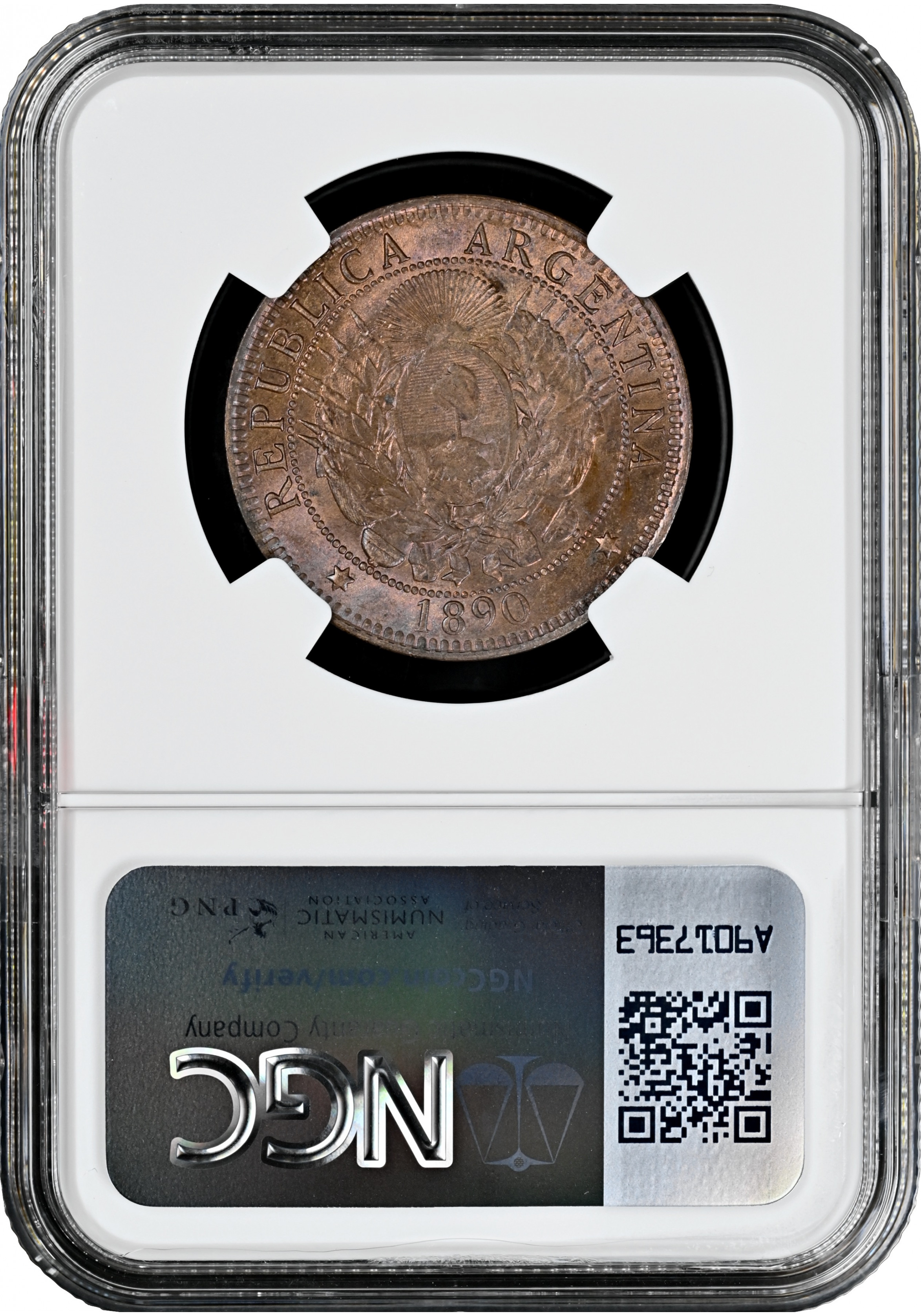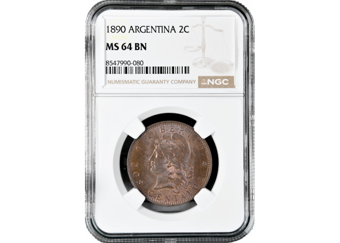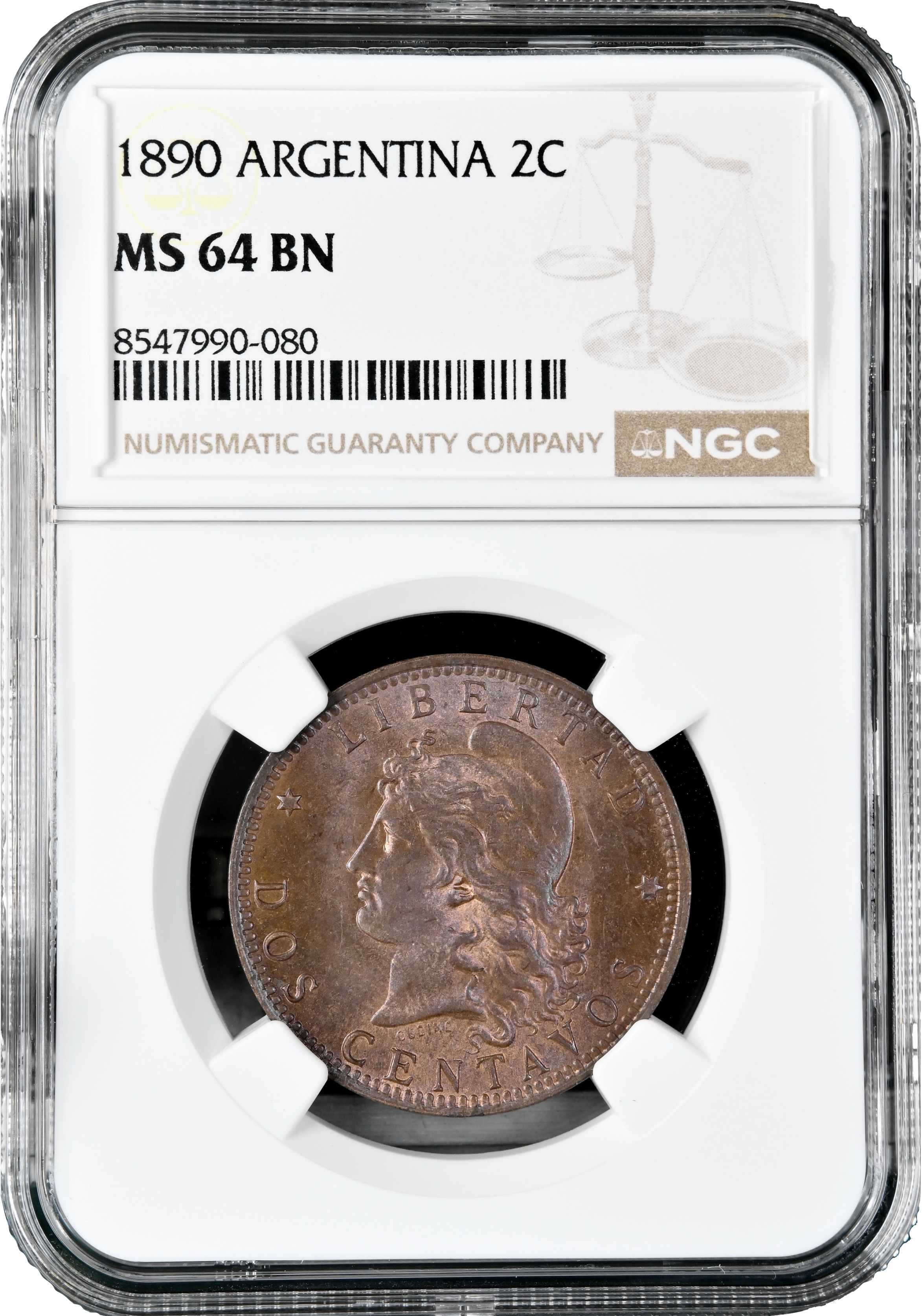Аргентина 2 сентаво 1890 г., NGC MS64 BN, "Песо аргентинское (1881 - 1969)" Top Pop