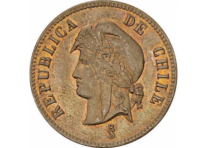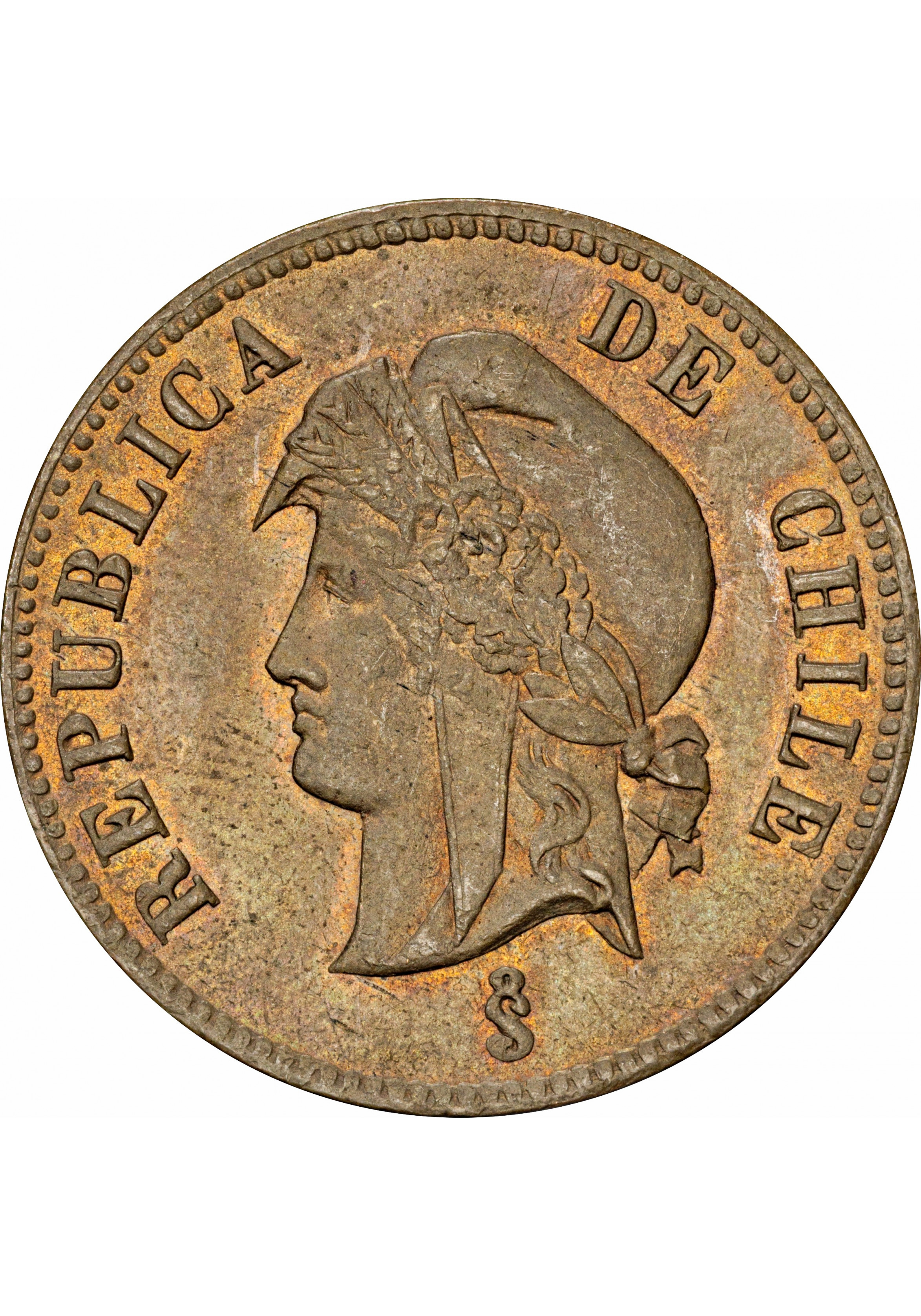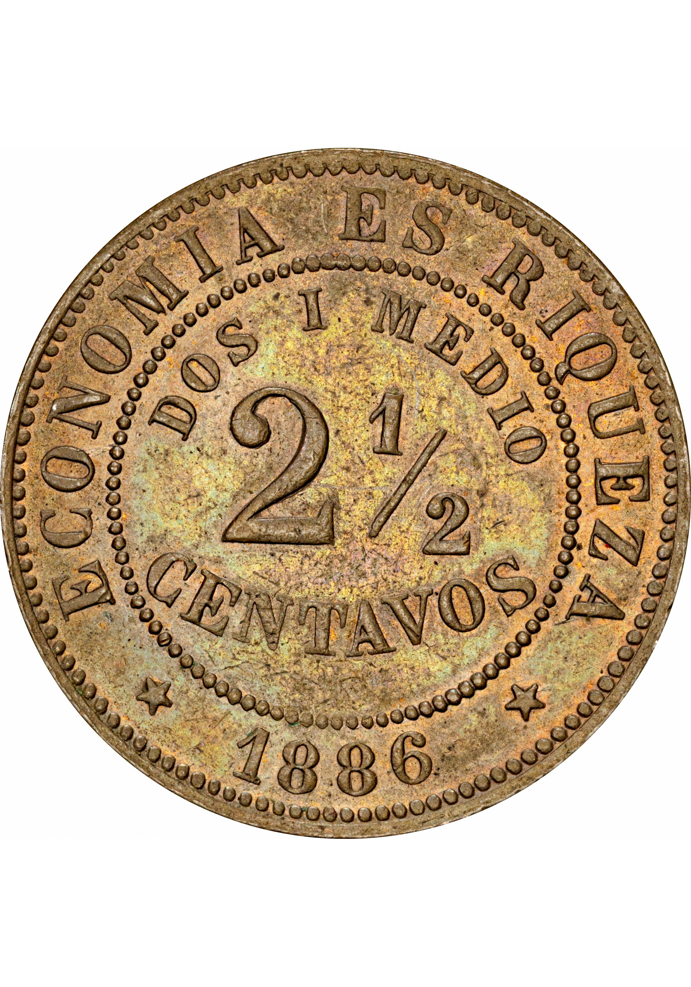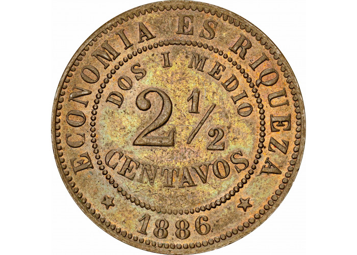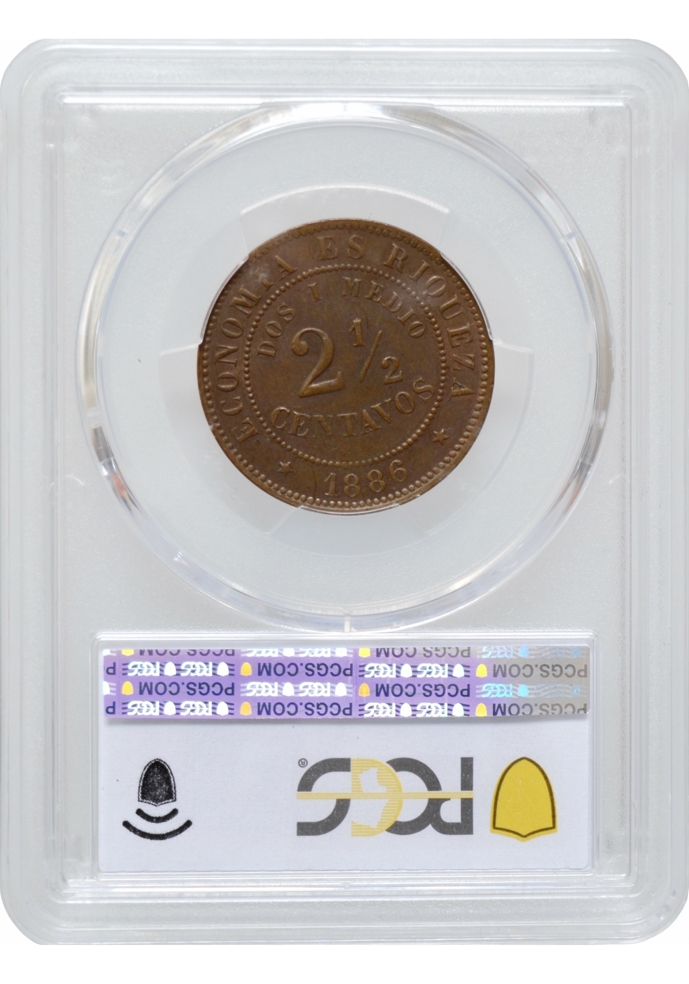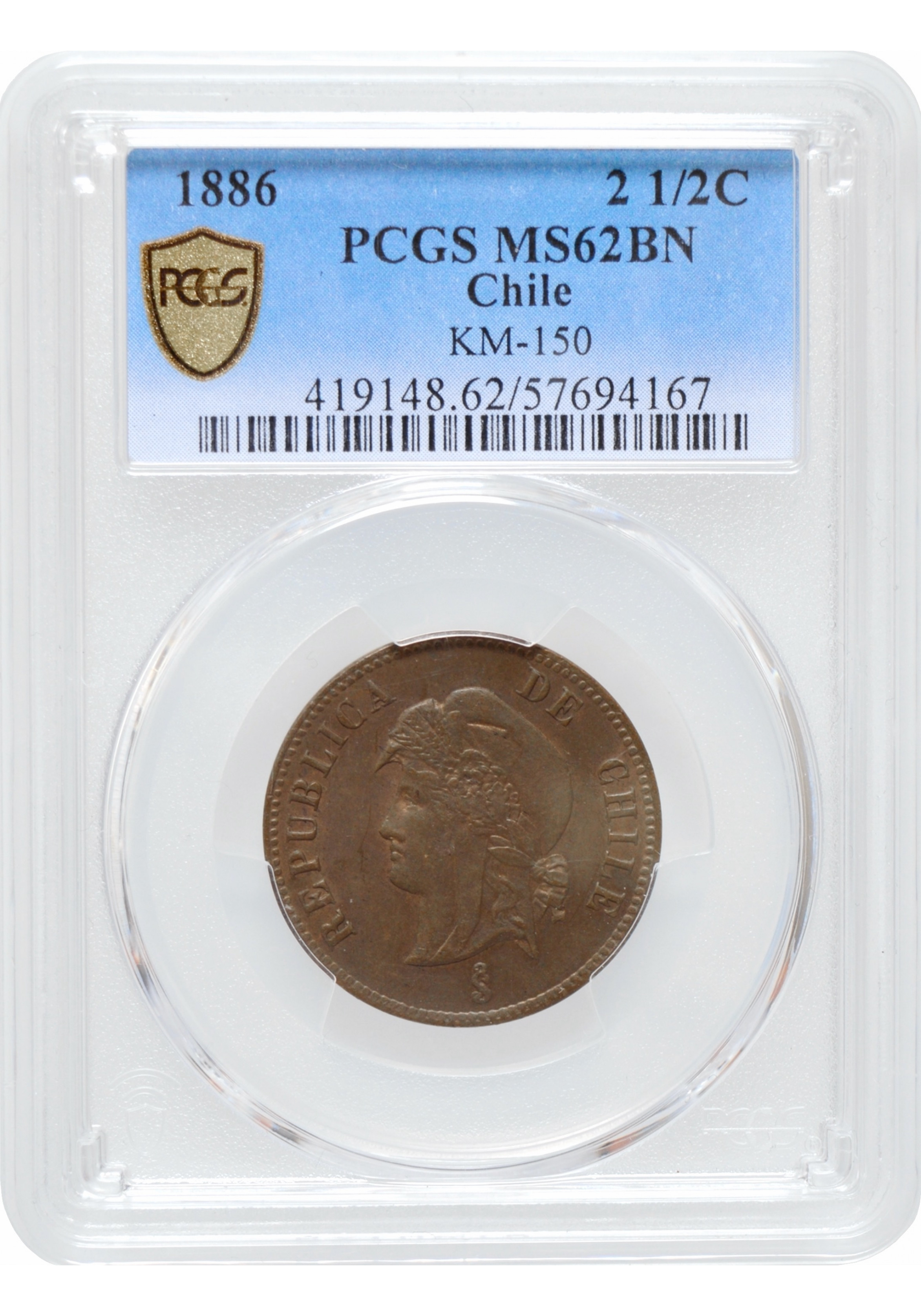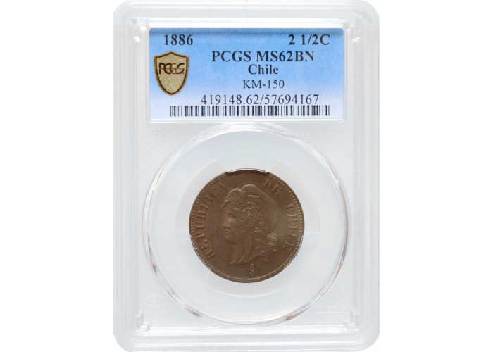 Чили 2.5 сентаво 1886 г. So, PCGS MS62 BN, "Республика Чили (1851 - 1898)"