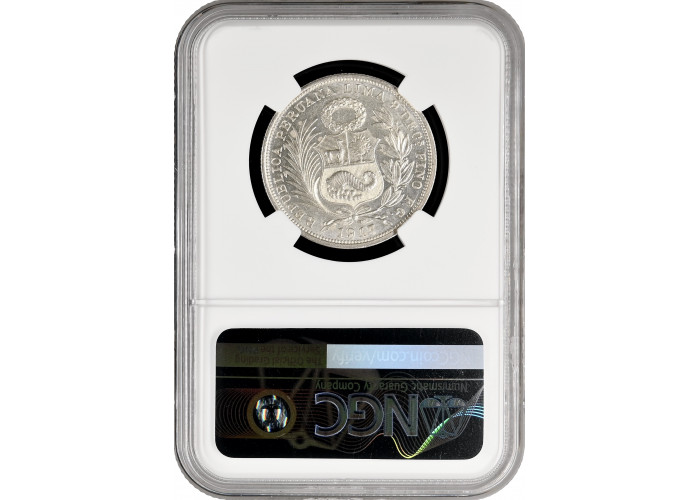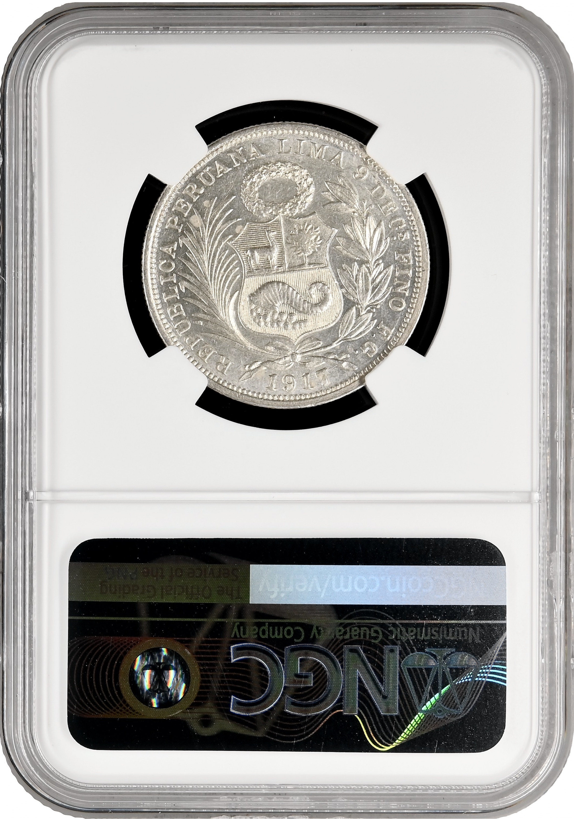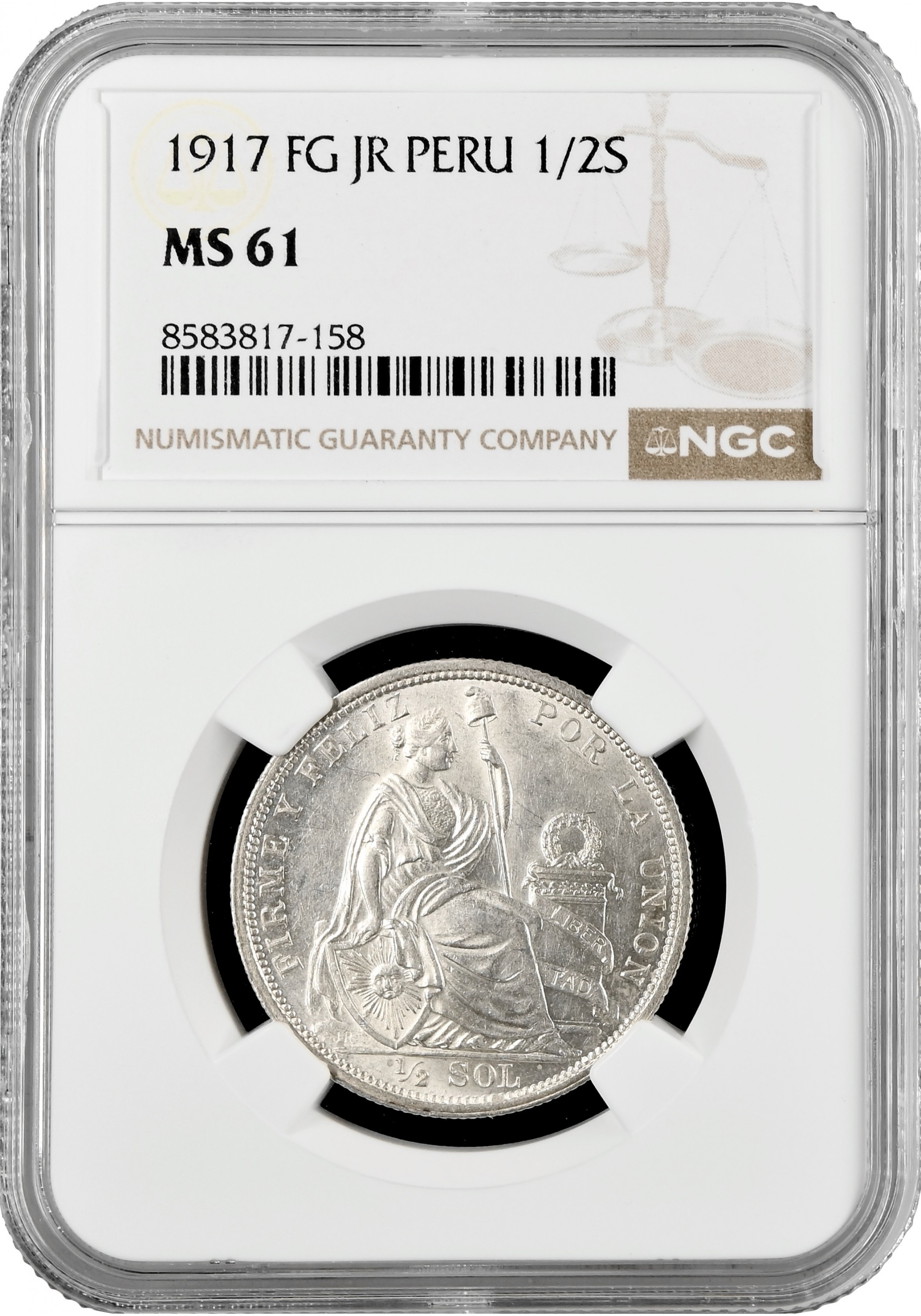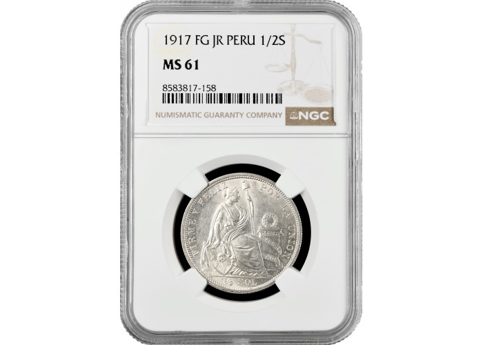Перу 1/2 соль 1917 г. FG JR, NGC MS61, "Республика Перу (1863 - 1917)"